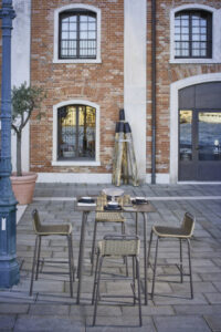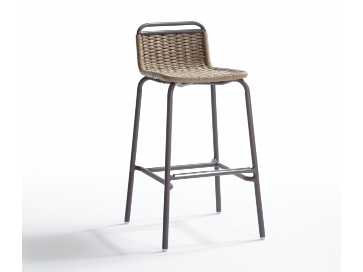 Outdoor Bar stool, aluminum frame powder coated woven with Nautic Rope. Its simplicity makes it ideal for every kind of furnishing, excellent for outdoor and indoor bar fittings, pool areas and terraces.