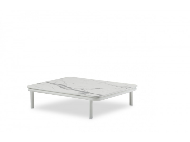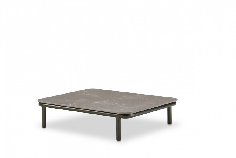 Low table, aluminum base powder coated, HPL top. A low rectangular table, versatile and functional, of great refinement and style, which interprets a contemporary trend.