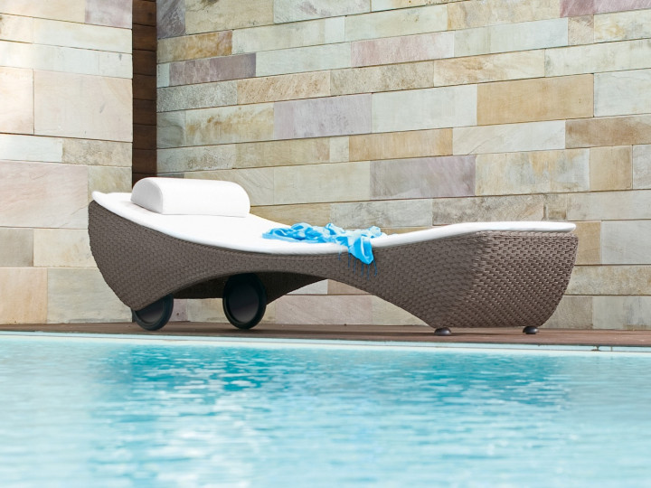 Sunbed, aluminum frame and sunloom. Ergonomic and rounded, the sunbed of the Saint Tropez Collection gives a touch of elegance to the pool, wellness and Spa areas, both in private and contract fittings.