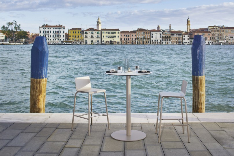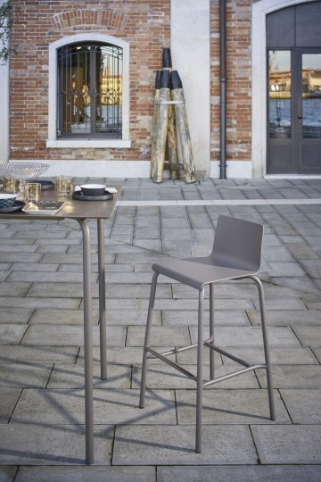 Outdoor bar stool, frame and seat in aluminum powder coated. The distinctive trait of the bar stool of the Samba Rio Collection is its basic shape that allows to combine it with every fitting. Suitable for furnishing bar and restaurants, outdoor and indoor.