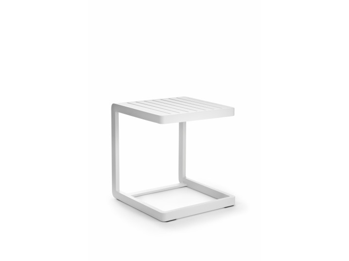 Side table, top with aluminum slats, powder coated. This is the ideal occasional table to place on the side of the sunbed in pool and wellness areas and SPA. Heavy-duty and long-lasting it’s perfect both for contract and residential projects.