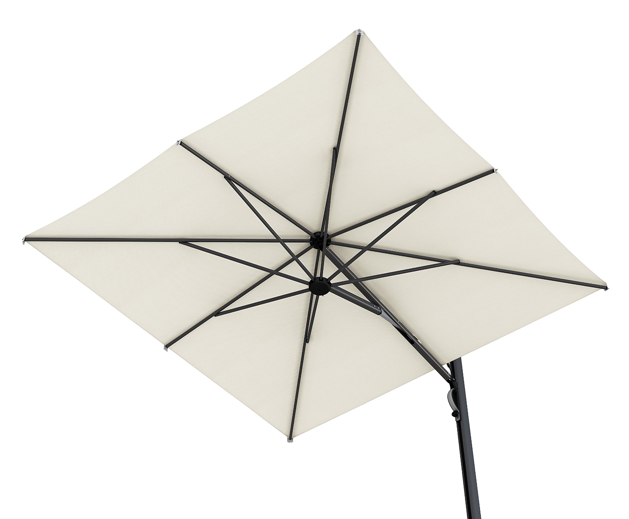 Marriage between the future and the classic. Harmonious for all environments. Frame with unique metallic graphite effect. The MOTION is a retractable solution and permits to open or close the parasol near to the pole without removing table and chairs. The combination of MOTION and ACTION System allows to open or close the parasol in one operation. Thanks to the gas spring, which compensates the weight of the umbrella, the handling is very light. Aluminium frame available in anodized version SpaceGrey or Carbon coated. Components and stainless steel hardware. Accessories Nylon ABS.