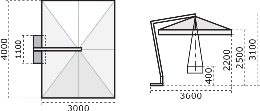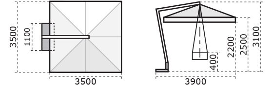 New cantilever parasol in aluminum with epoxy coated frame color Starwhite. Particularly elegant version also fi tting with exclusive environments. Strong parasol suitable for a heavy professional employ.