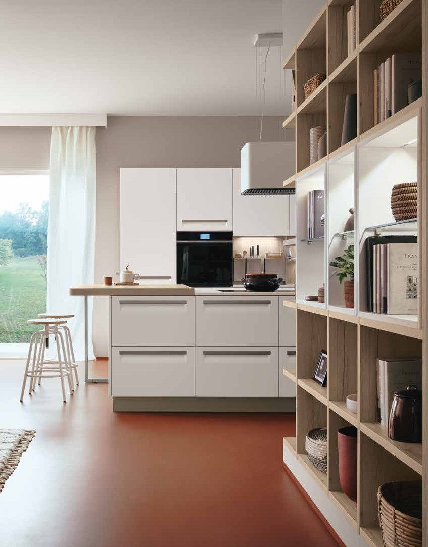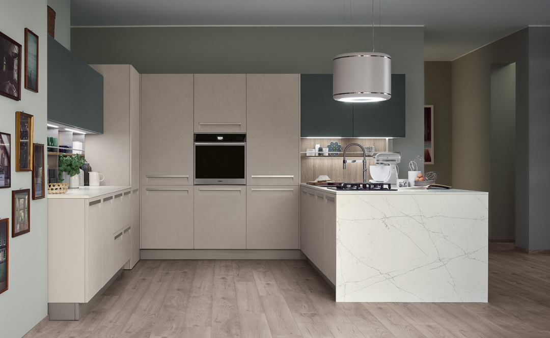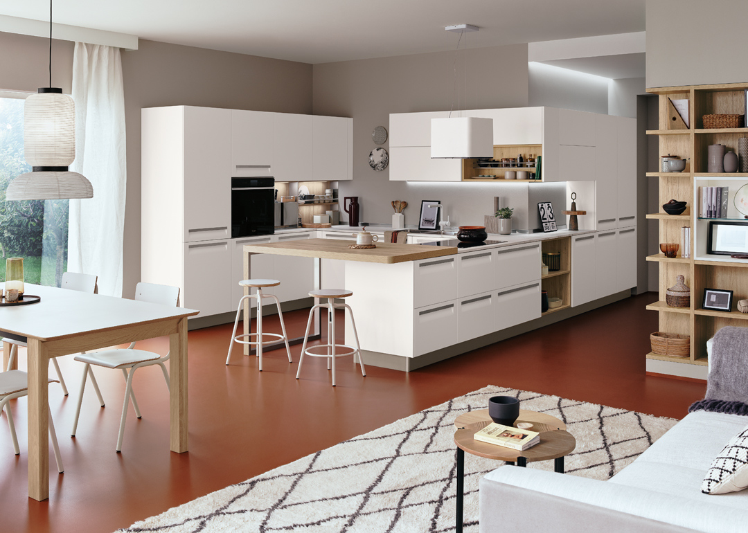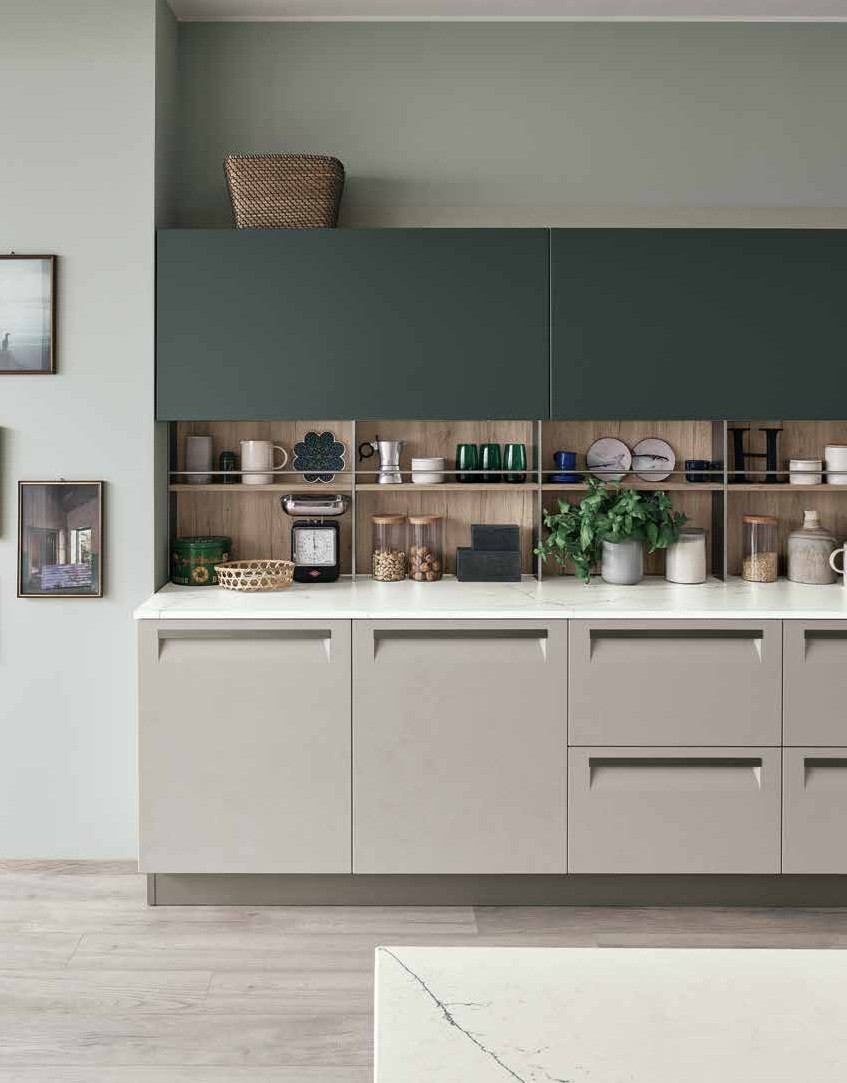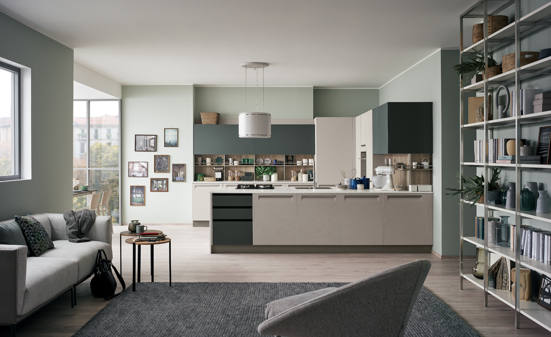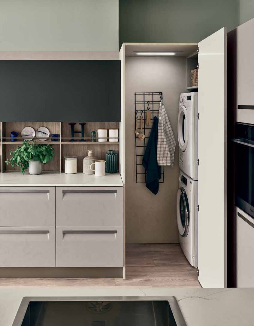 An essential kitchen conceived in a variety of configurations and with ample scope for personalization that will encompass recherché, minimal, sumptuous or original, with an unmatched range of materials and colourways. The integral handgrip fitted to Carrera F1 is an addition to the highly-practical recessed system of aperture on Carrera.Go, which uses a recessed handgrip, and the more traditional handles.