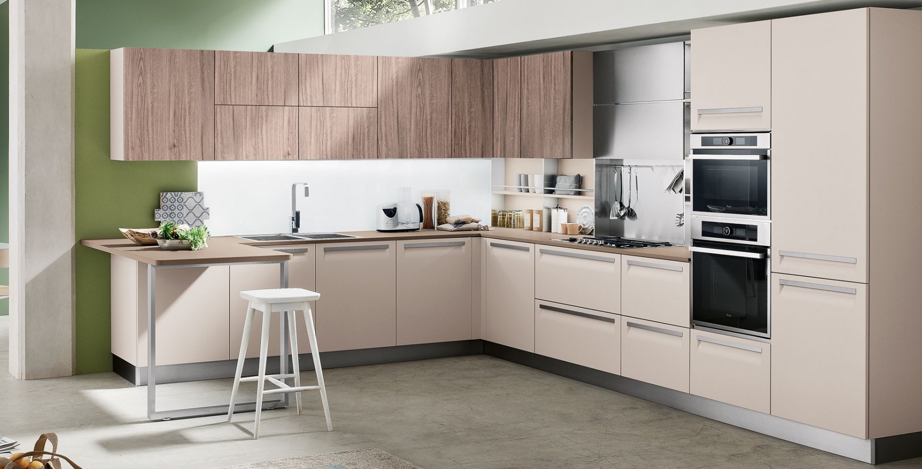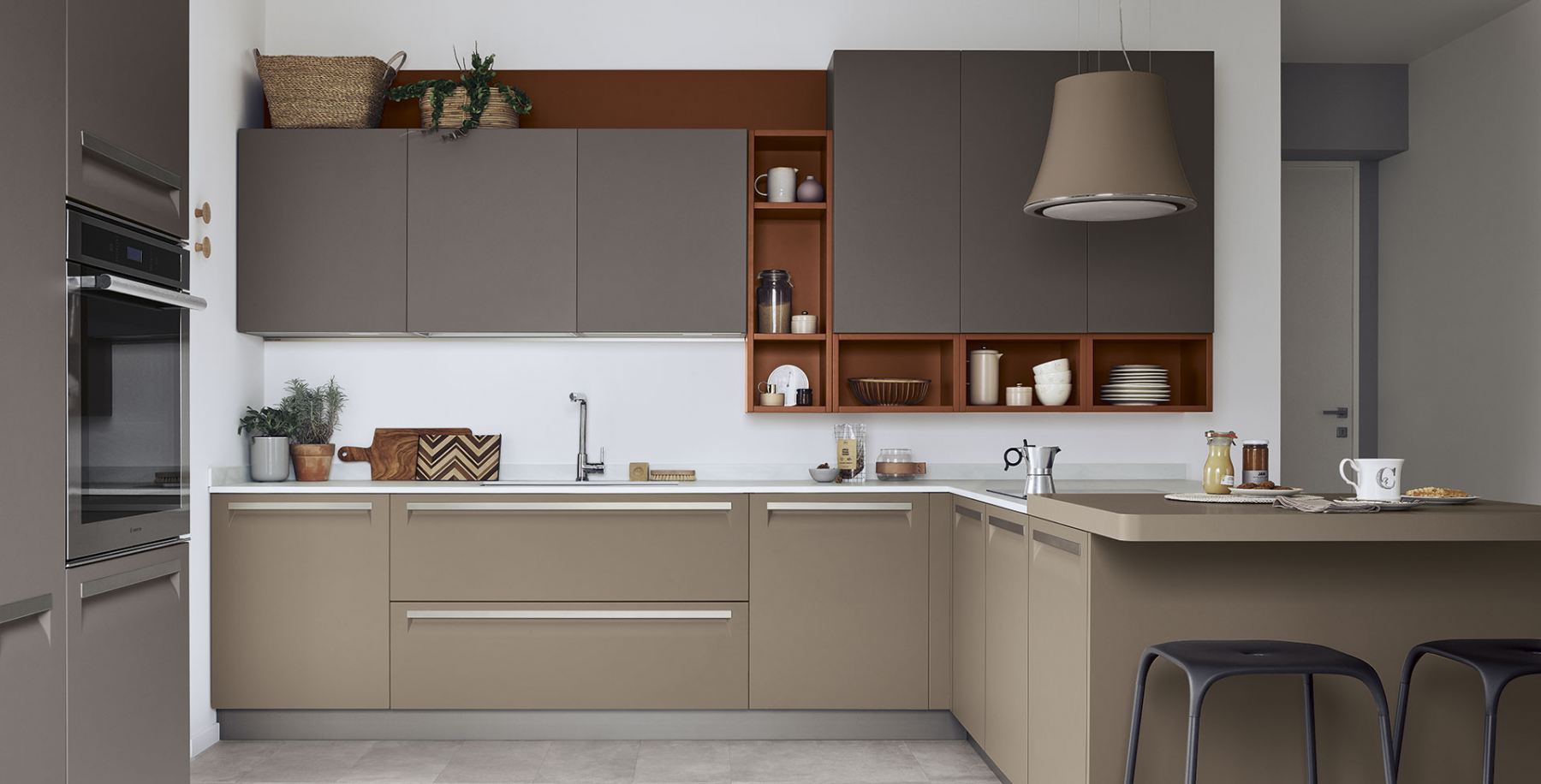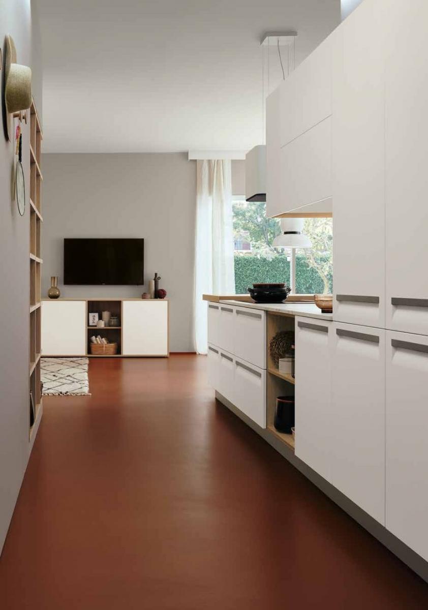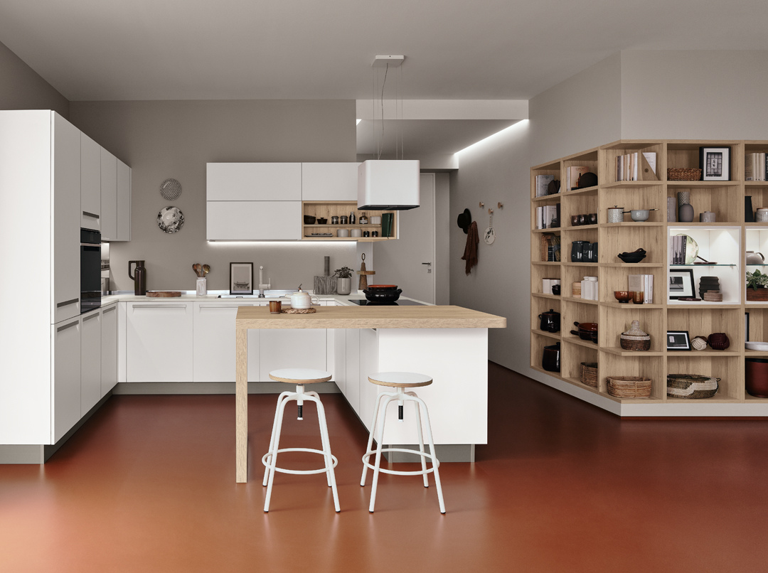 An essential kitchen conceived in a variety of configurations and with ample scope for personalization that will encompass recherché, minimal, sumptuous or original, with an unmatched range of materials and colourways. The integral handgrip fitted to Carrera F1 is an addition to the highly-practical recessed system of aperture on Carrera.Go, which uses a recessed handgrip, and the more traditional handles.