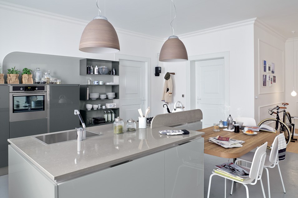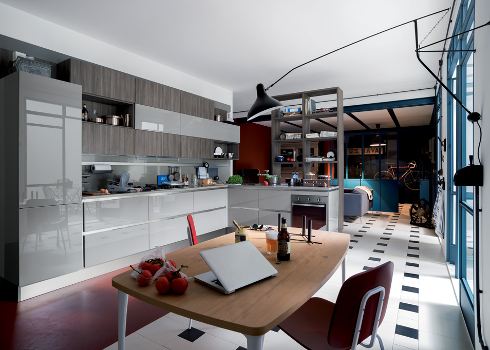 An essential kitchen conceived in a variety of configurations and with ample scope for personalization that will encompass recherché, minimal, sumptuous or original, with an unmatched range of materials and colourways. The integral handgrip fitted to Carrera F1 is an addition to the highly-practical recessed system of aperture on Carrera.Go, which uses a recessed handgrip, and the more traditional handles.