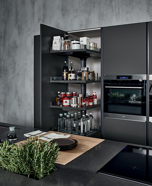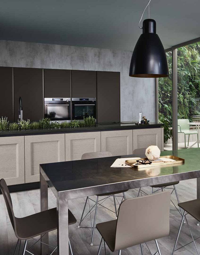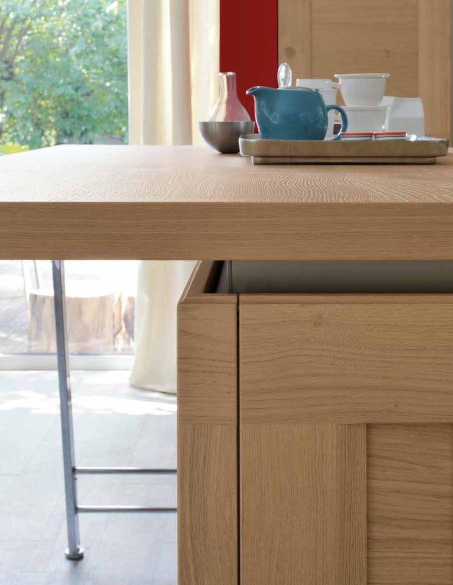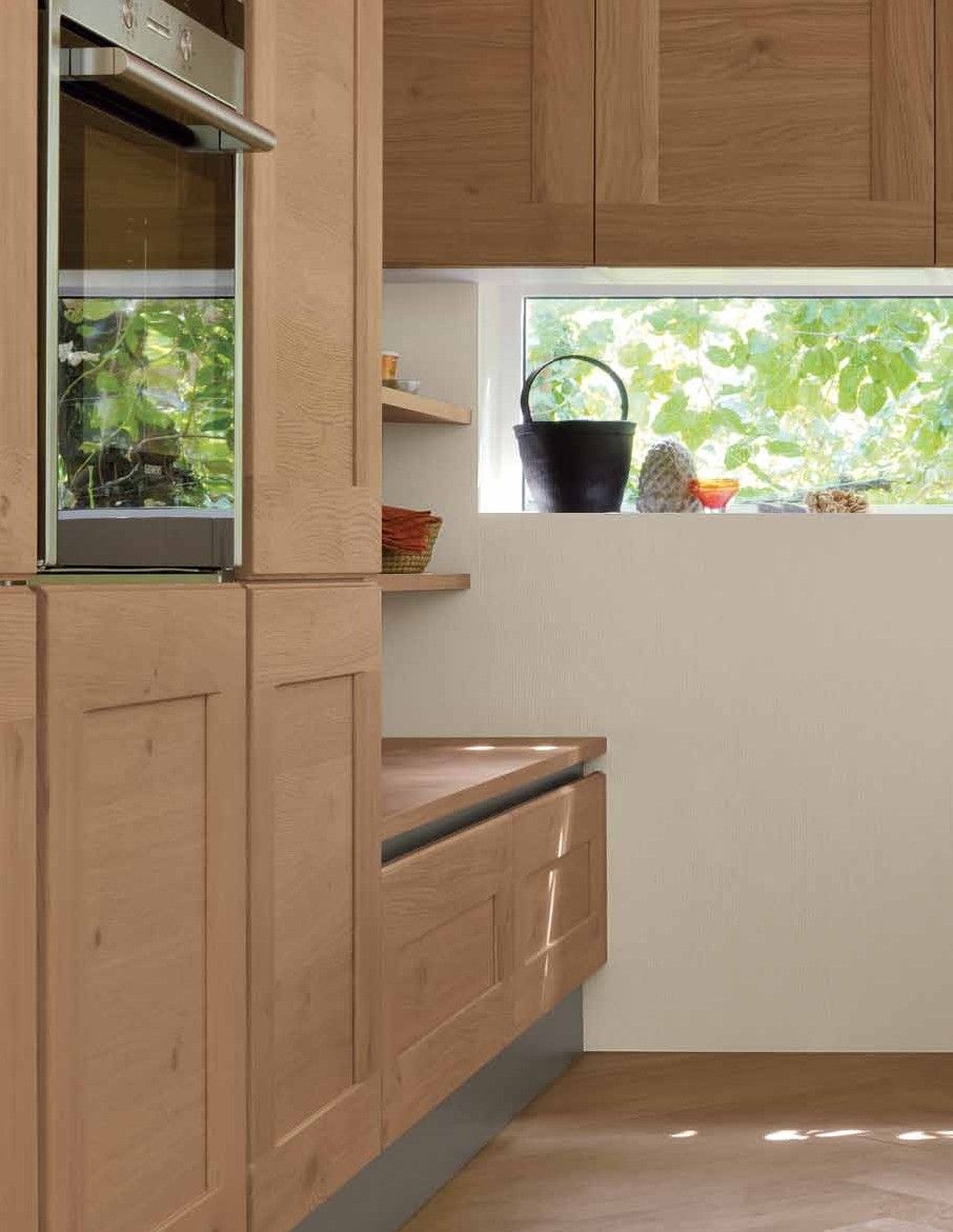 Features of the model are: the oak finish that makes the irregularity an intrinsic value and the door, with an upper and lower decorative trim, which has decisive proportions and traditional styles. Available for the model the aperture system with handle and with Shellsystem profile.