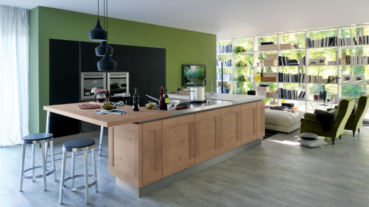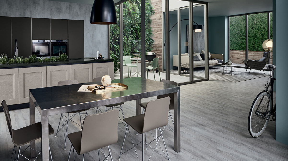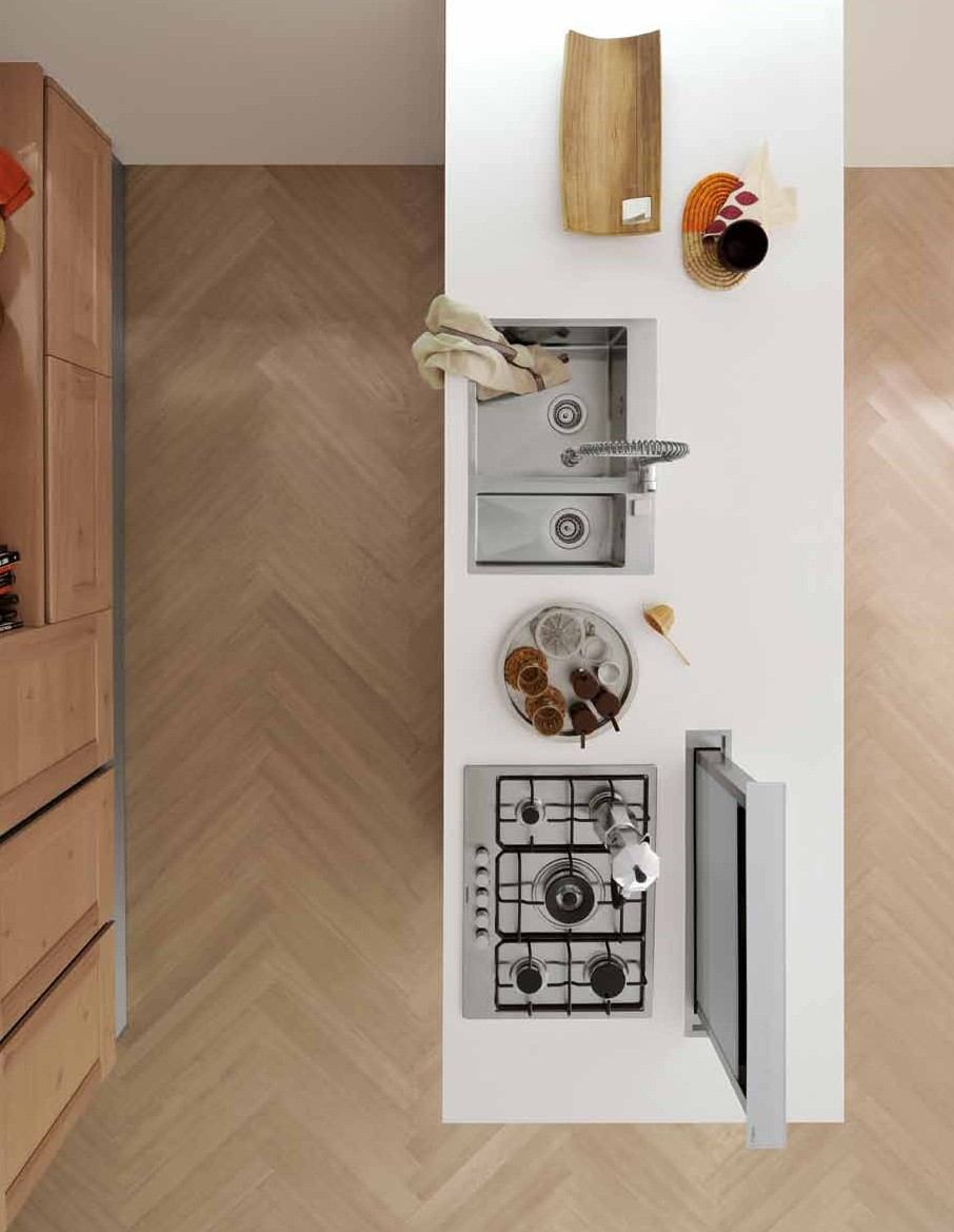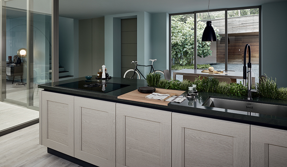 Features of the model are: the oak finish that makes the irregularity an intrinsic value and the door, with an upper and lower decorative trim, which has decisive proportions and traditional styles. Available for the model the aperture system with handle and with Shellsystem profile.