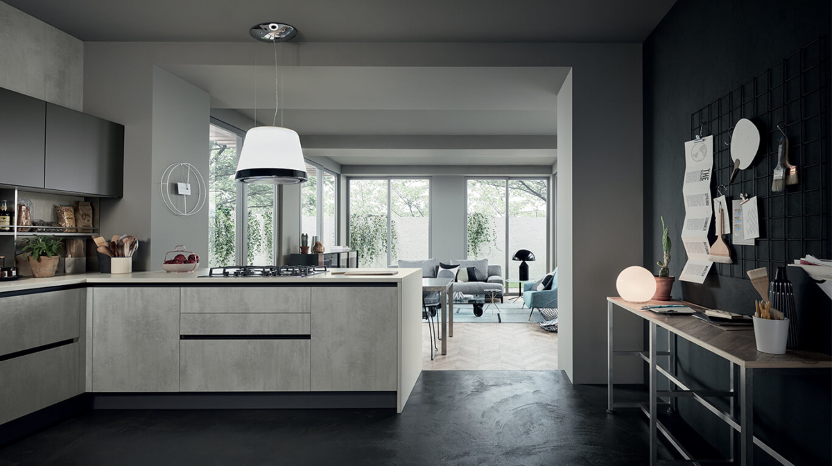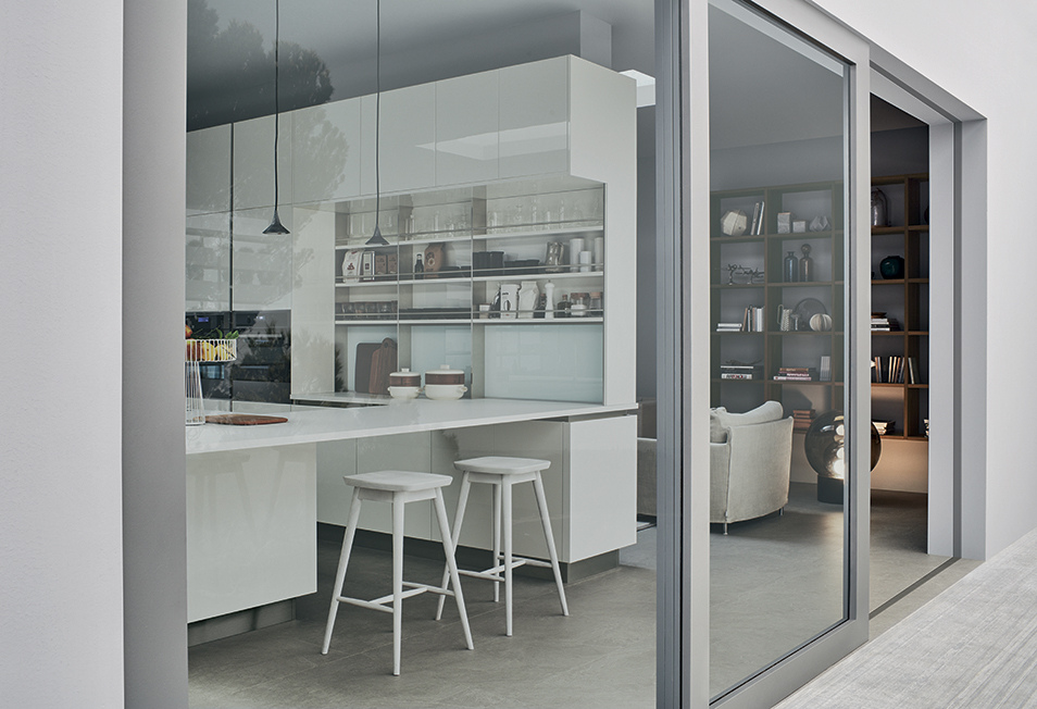 A kitchen that makes minimalism its trump card, offering a new solution for functionality requirements. Its outstanding features include its pure flat door, the up-to-date feel of the wood, the brilliant glow of modernity in the gloss lacquers, the futuristic elegance of the matte lacquers and the pleasingly natural effects obtained through a thermostructuring process are the main features, in addition to the ShellSystem structure and its evolution that uses of the ergonomically-shaped profile Pro.