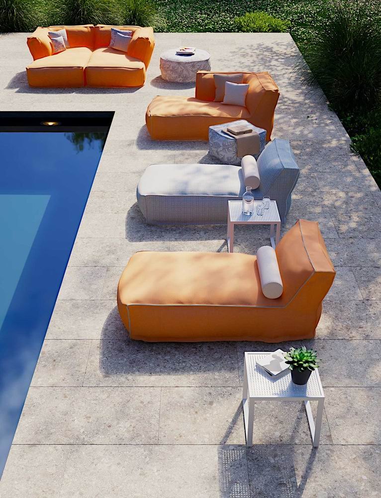 Πολυμορφική σύνθεση από διαπνέοντα μικροσφαιρίδια πολυστυρενίου με επένδυση από διαπνέον τεχνικό ύφασμα. Το ύφασμα επένδυσης επιλέγεται από τα δείγματα της Atmosphera, αφαιρείται και πλένεται.