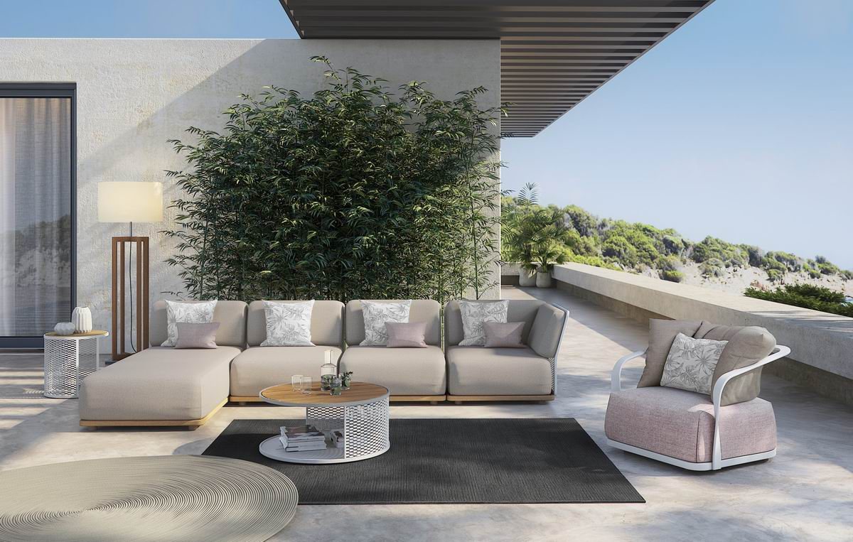 Η έμπνευση γίνεται μεγαλύτερη στη θέα των απλών πραγμάτων. Ένα λευκό πλαίσιο αλουμινίου δένεται αρχιτεκτονικά και δημιουργεί ένα μεγάλο αριθμό συνδυασμών για την πιο κατάλληλη σύνθεση. Τα βασικά χαρακτηριστικά αυτής της συλλογής είναι οι πολυμορφικοί καναπέδες, τραπέζια που δένουν με το περιβάλλον, σαλόνια και ωραία φωτιστικά.