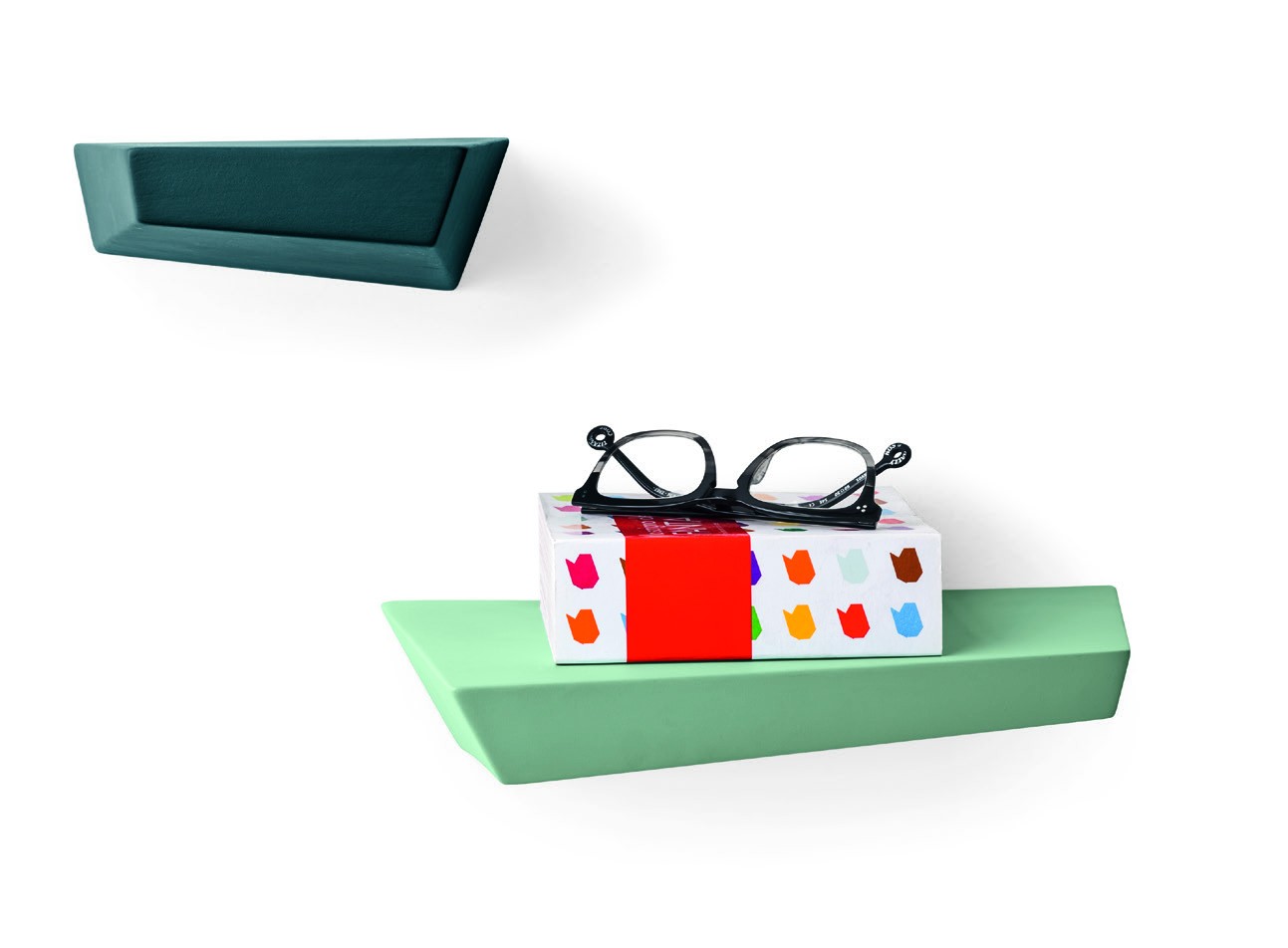 A handy shelf just waiting to accommodate your favourite things. With a geometrical allure, these unsymmetrical GEMMA shelves come in two different sizes and an assortment of colours, so you can play with mixing and matching to your heart’s content. Crafted from ceramic with a matt lacquered finish, they are easy to attach to the wall with a metal support.