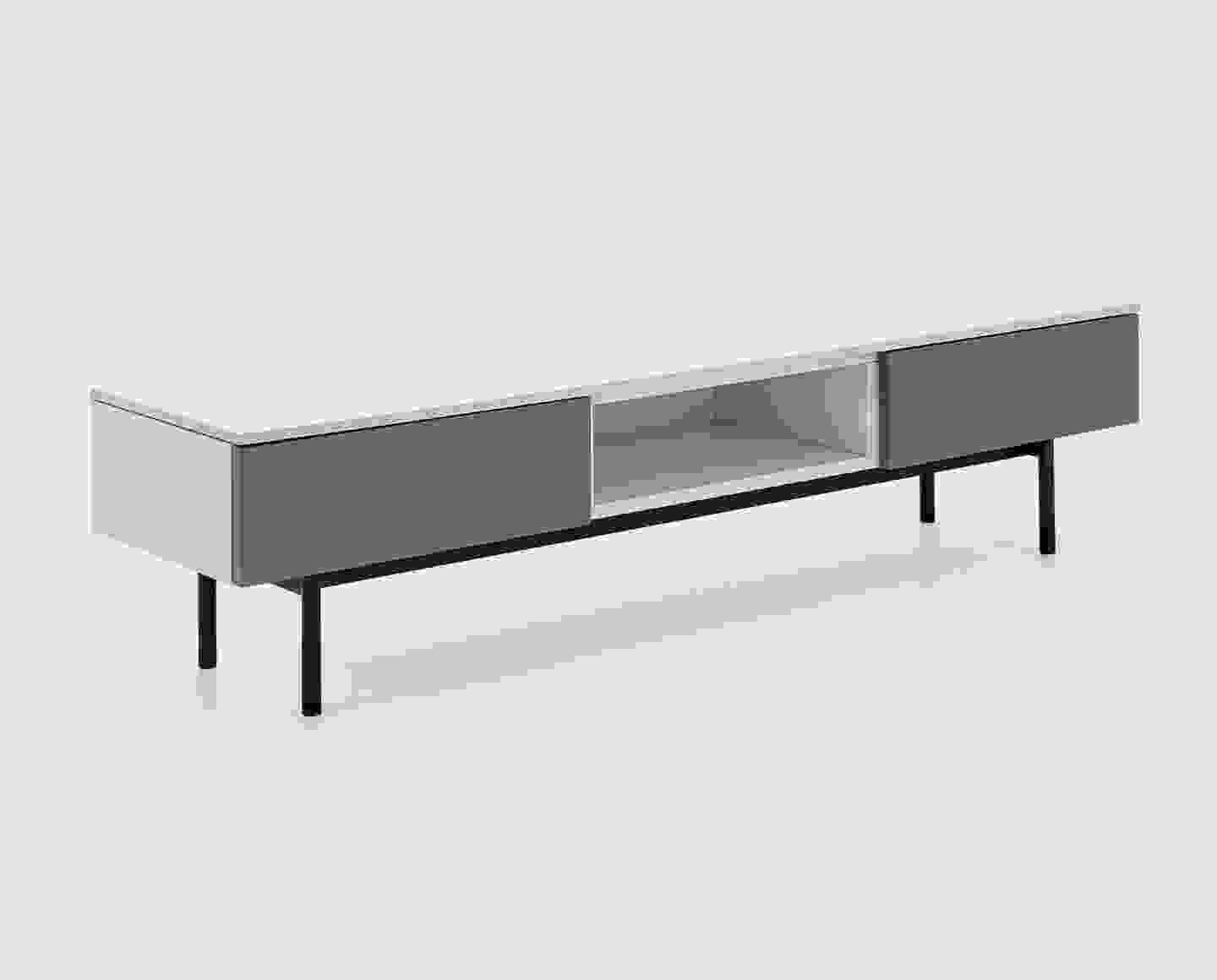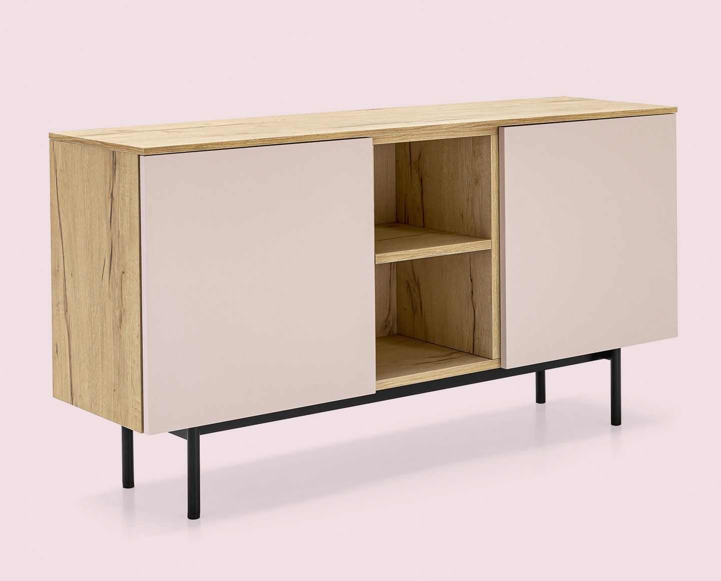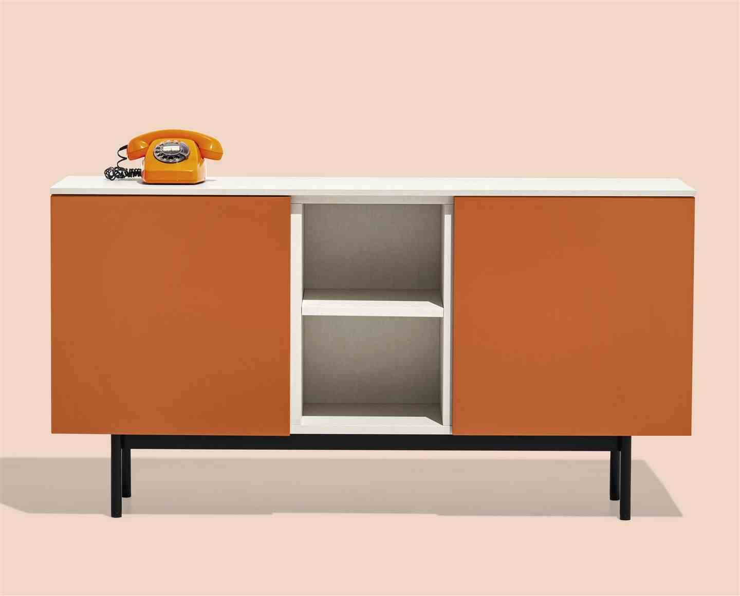 MADE is a sideboard with 3 doors and 2 internal compartments. Chest and top in melamine wood, melamine or lacquered front panels and raised base set on metal feet.
