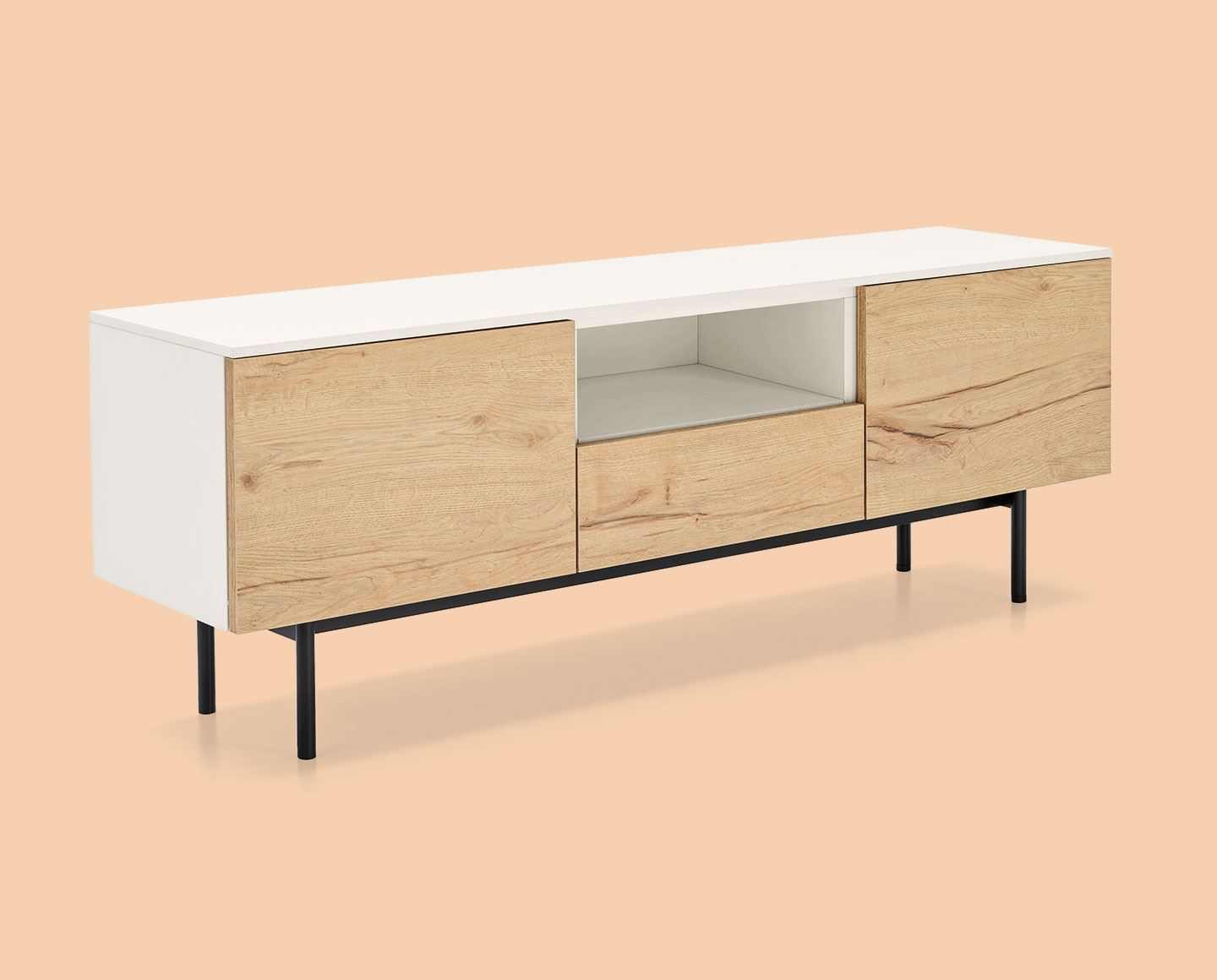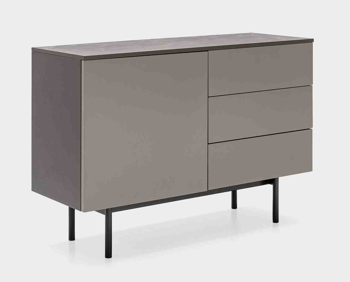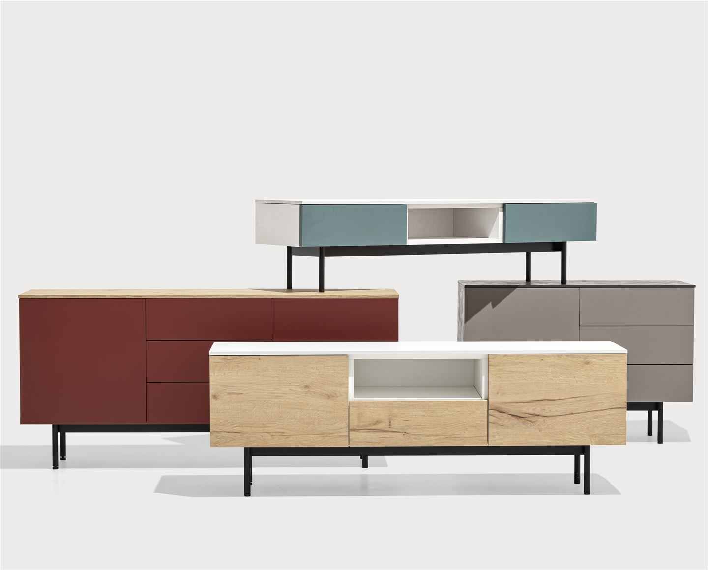 Also available with a door and 3 drawers, with 2 doors and an open compartment in the middle, with 2 doors and central drawers and as an entertainment unit with two drop-leaf doors and a drawer with an open compartment in the middle.