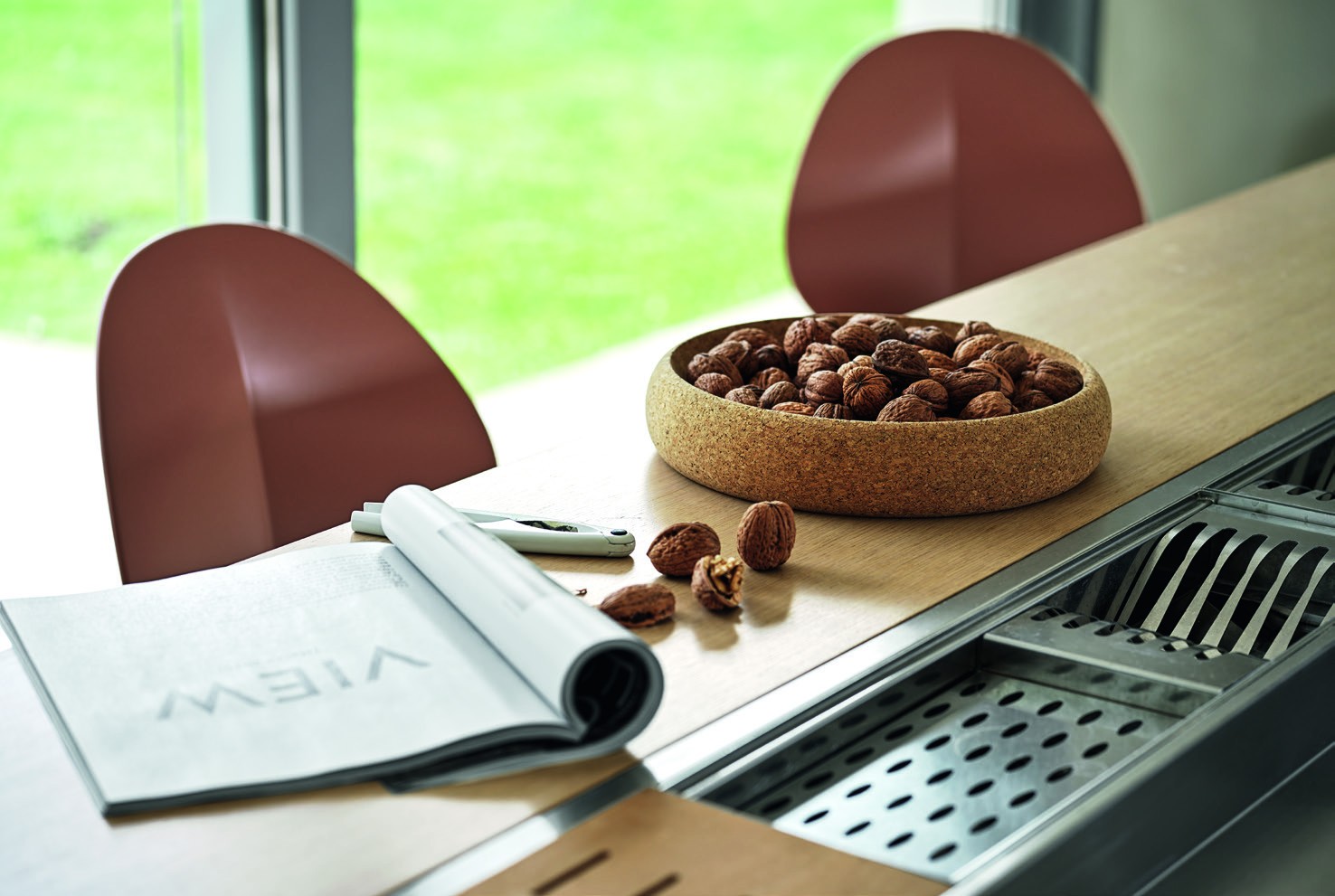 KORK is a centerpiece made from 100% cork, a natural Mediterranean material that is waterproof, breathable, durable and of ancient origin. The geometric design of its carved shape exalts the simplicity of its round and soft lines.