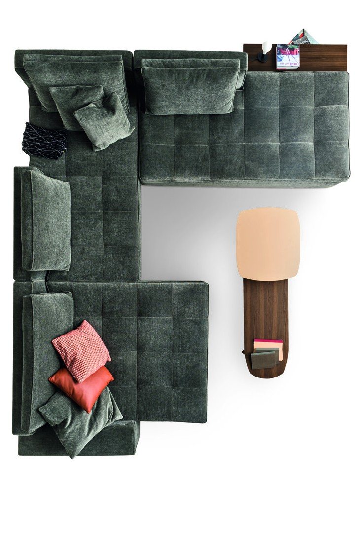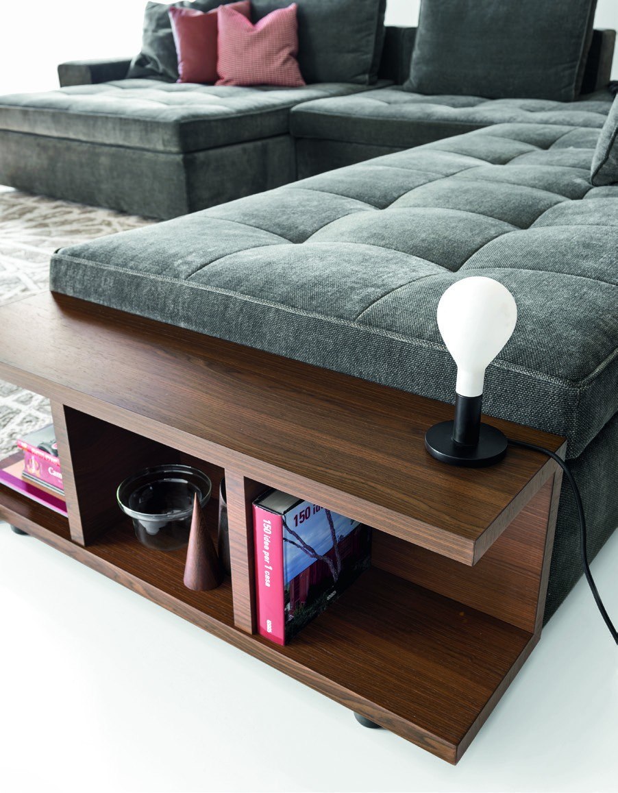 LOUNGE is an easy sectional sofa, with a rigorous design, whose appearance is softened by the use of comfortable materials and coverings. It is perfectly adaptable to modern and classic furnishing styles. The LOUNGE programme also includes a comfortable ottoman