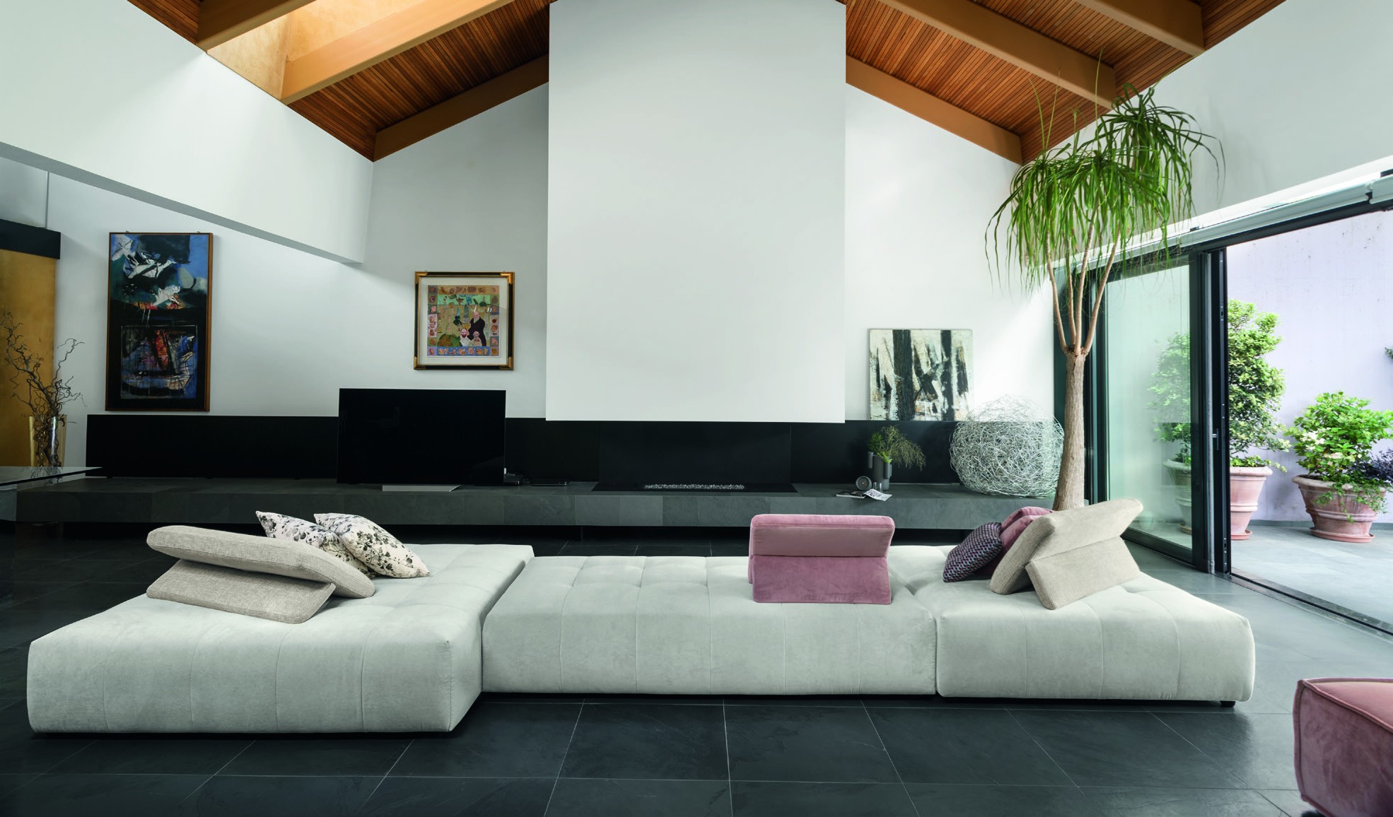 This YPSILON sofa is a fun way to add style to the chill-out area of your house. It is an entirely modular island sofa with square quilting – perfect on its own and sublime with other island units, whether they be square or rectangular. The two different backrest cushions can be placed to taste on the sofa and have a counterweight so they can be positioned in two different ways (sleep & talk). This sofa is a 24/7 affair.