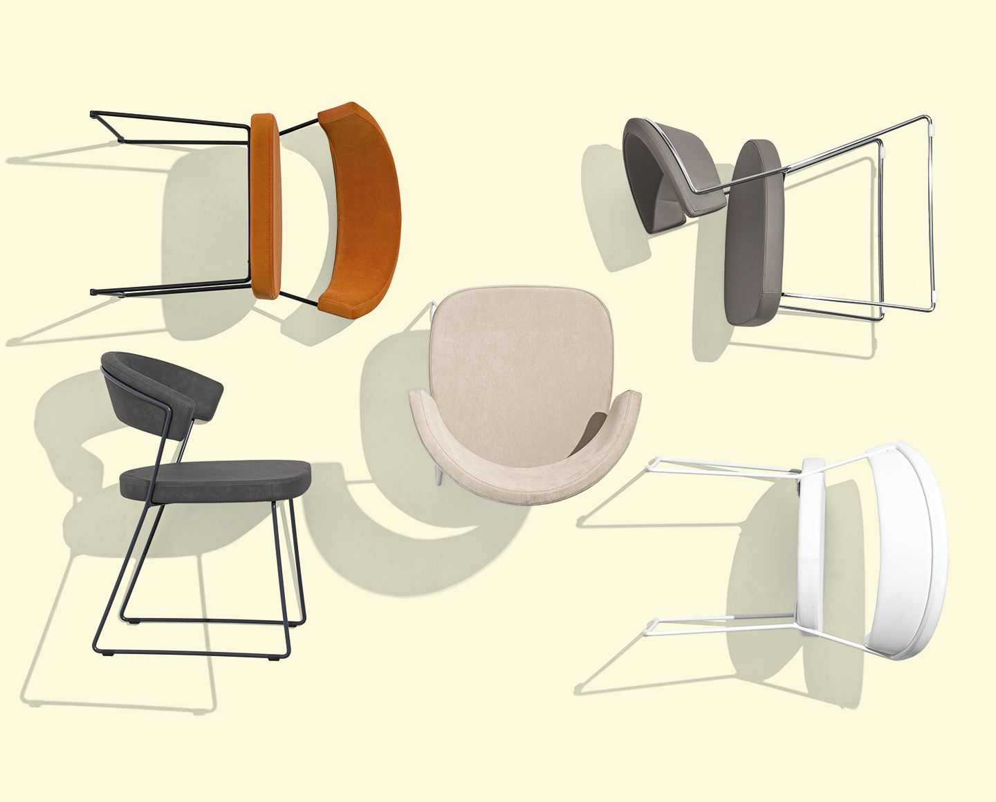 NEW YORK chair is also available with a metal base fitted with soft rubber castors, swivel and height-adjustable.