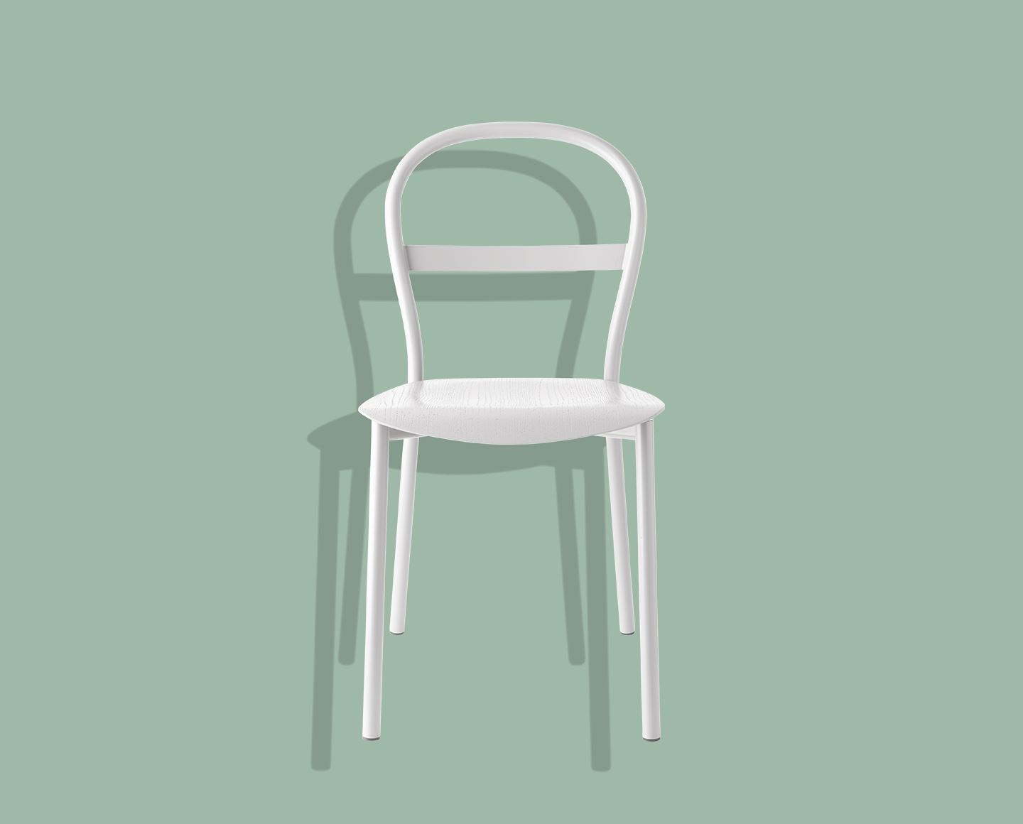 NOVA metal chair with plywood seat. The rounded shape of the backrest and the option to choose from various finishes for the seat characterize the versatility of this highly practical chair with simple lines. Also perfect for a young kitchen or a bar.