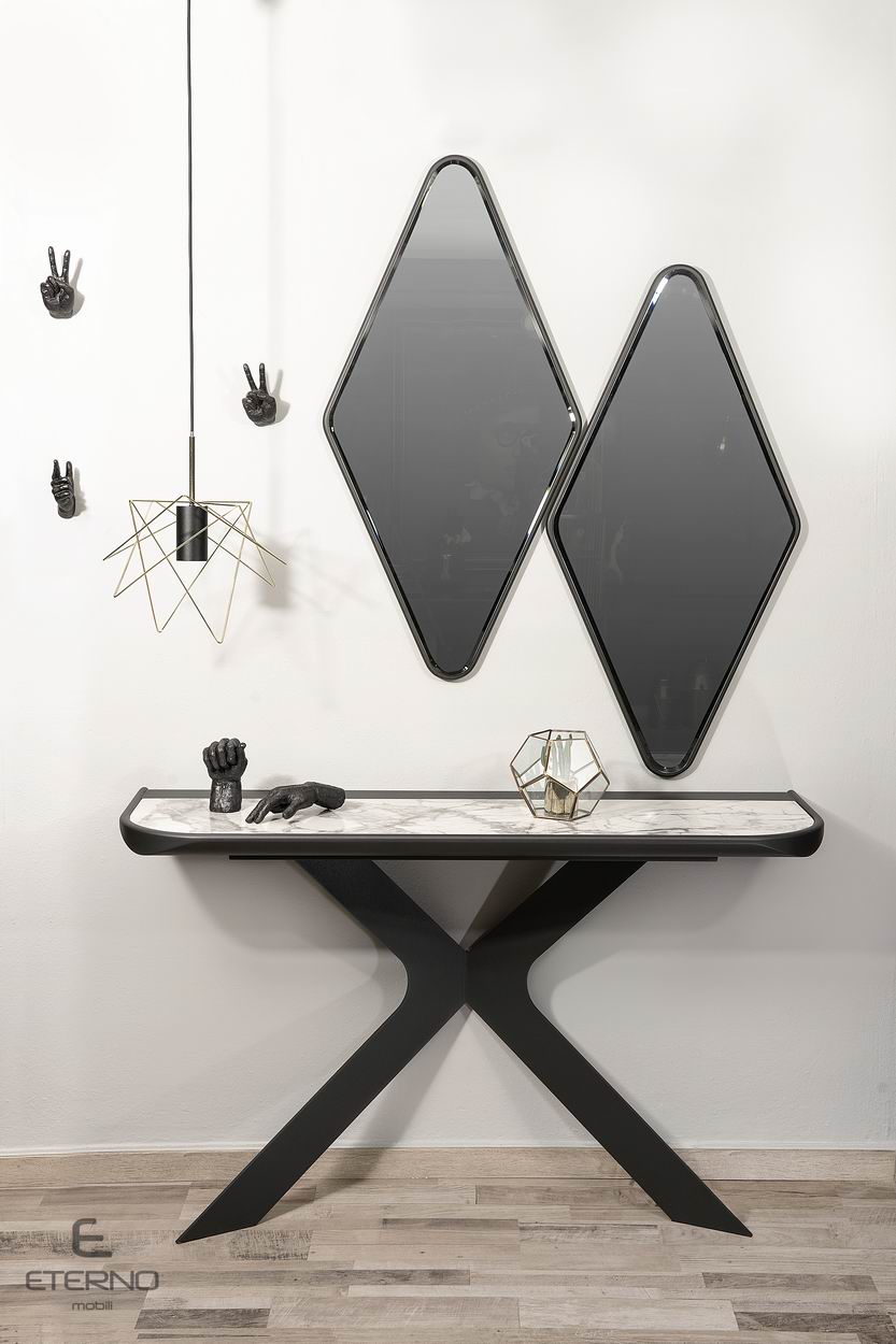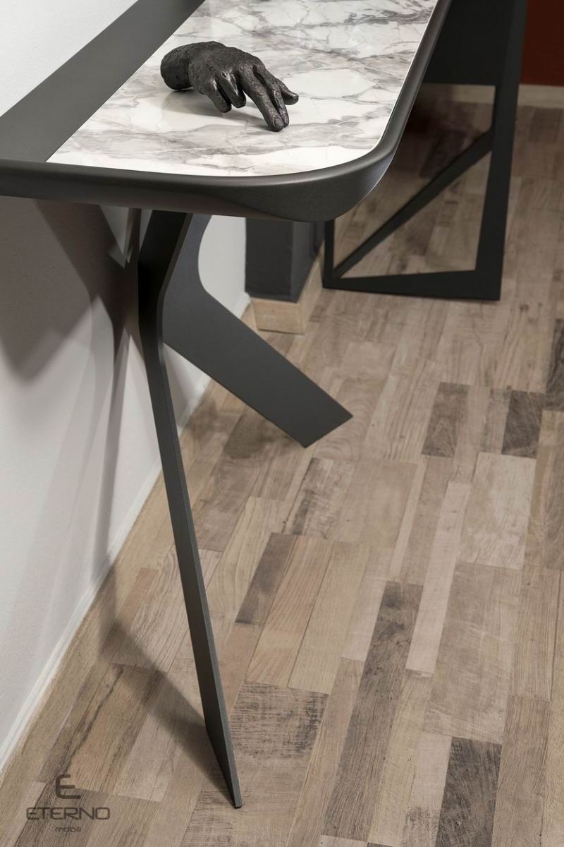 Μεταλλικός σκελετός σε συνδυασμό με κεραμική επιφάνεια και λάκα γκοφρέ.