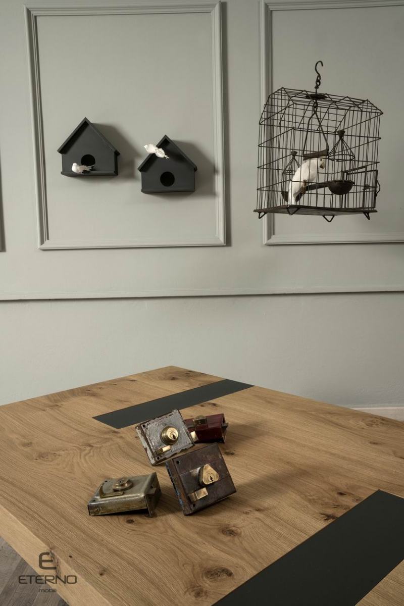 Ξύλο δρυς ρουστικ σε συνδυασμό με μεταλλικά στοιχεία.