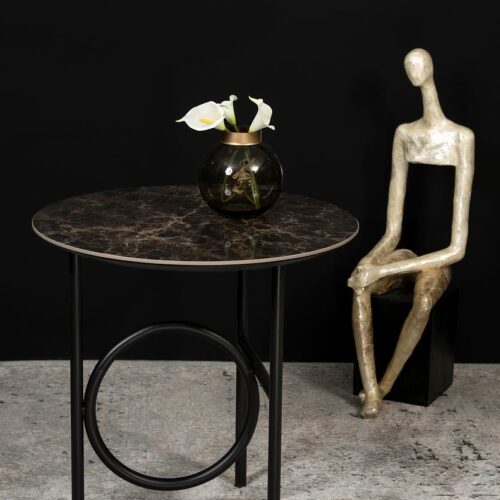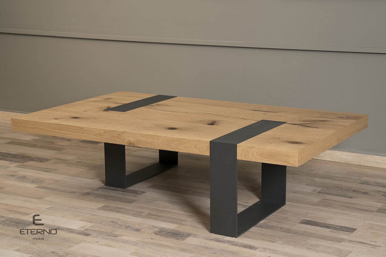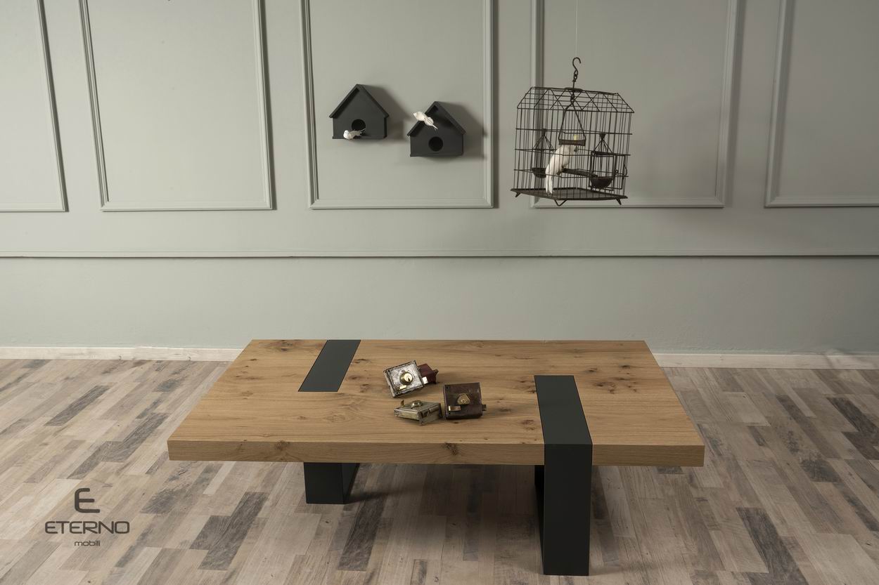 Το τραπεζάκι Steel είναι κατασκευασμένο από ξύλο ρουστικ και δύο μεταλλικά πόδια που αγκαλιάζουν την επιφάνεια του.