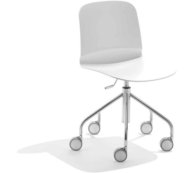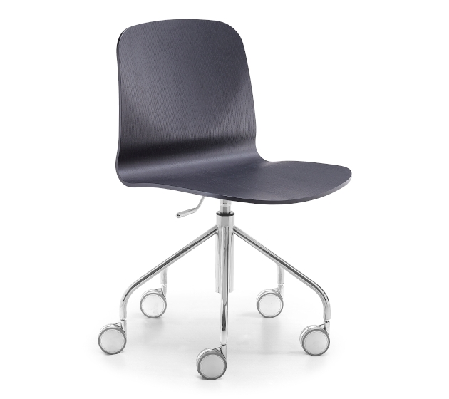 Also available with fixed steel trestle base, with sled base in lacquered steel and with swivel high adjustable five ways base on weels.