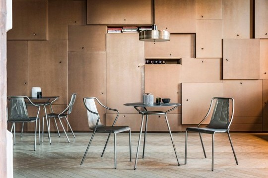 Also available with seat and back in wood or upholstered in leather, faux leather or fabric.