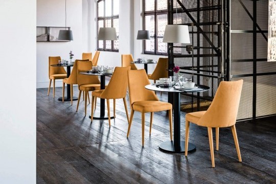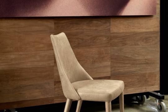 Sharon four legs base in painted steel upholstered in fabric, leather, ecoleather or custom’s fabric.