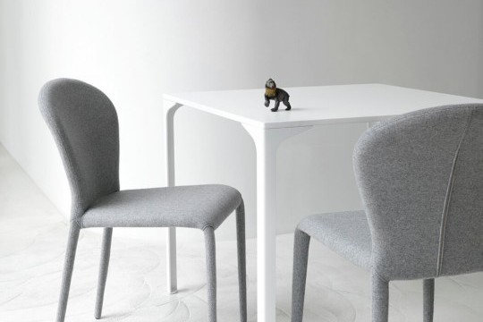 Chair with four-legs base completely upholstered in leather, faux leather or fabric.