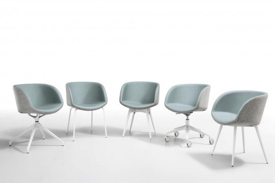 Also available as swivel chair with trestle base or 5 ways base in lacquered steel, fitted with gas mechanism for height adjustment.