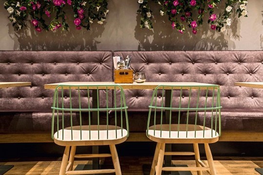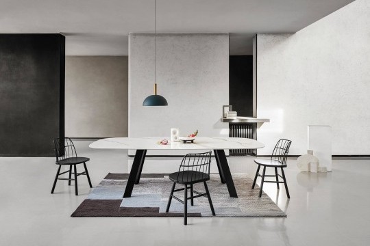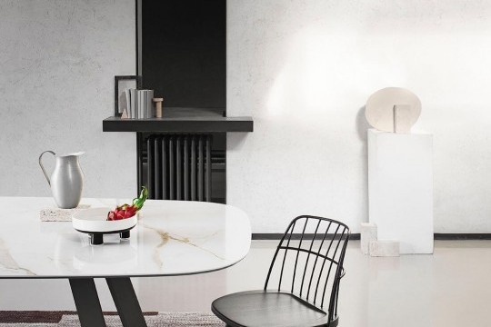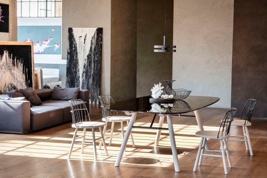 Chair with wooden frame backrest in lacquered steel.