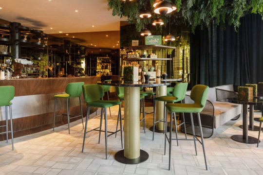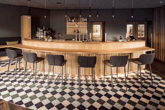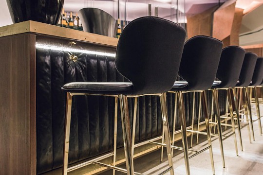 Wrap stool is available in barstool version with seat height 75 cm (29.5 in) and in kitchen version with seat height H67 cm (26.4 in).