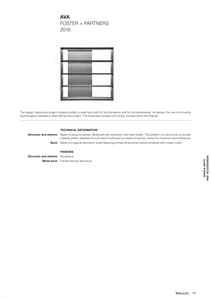 The design, featuring a single V-shaped profile, is used here both for the framework and for the bookshelves. As always, the use of innovative technological materials is what defines this project. Structural shelves made of plywood panels, reinforced with aluminium and then folded.
