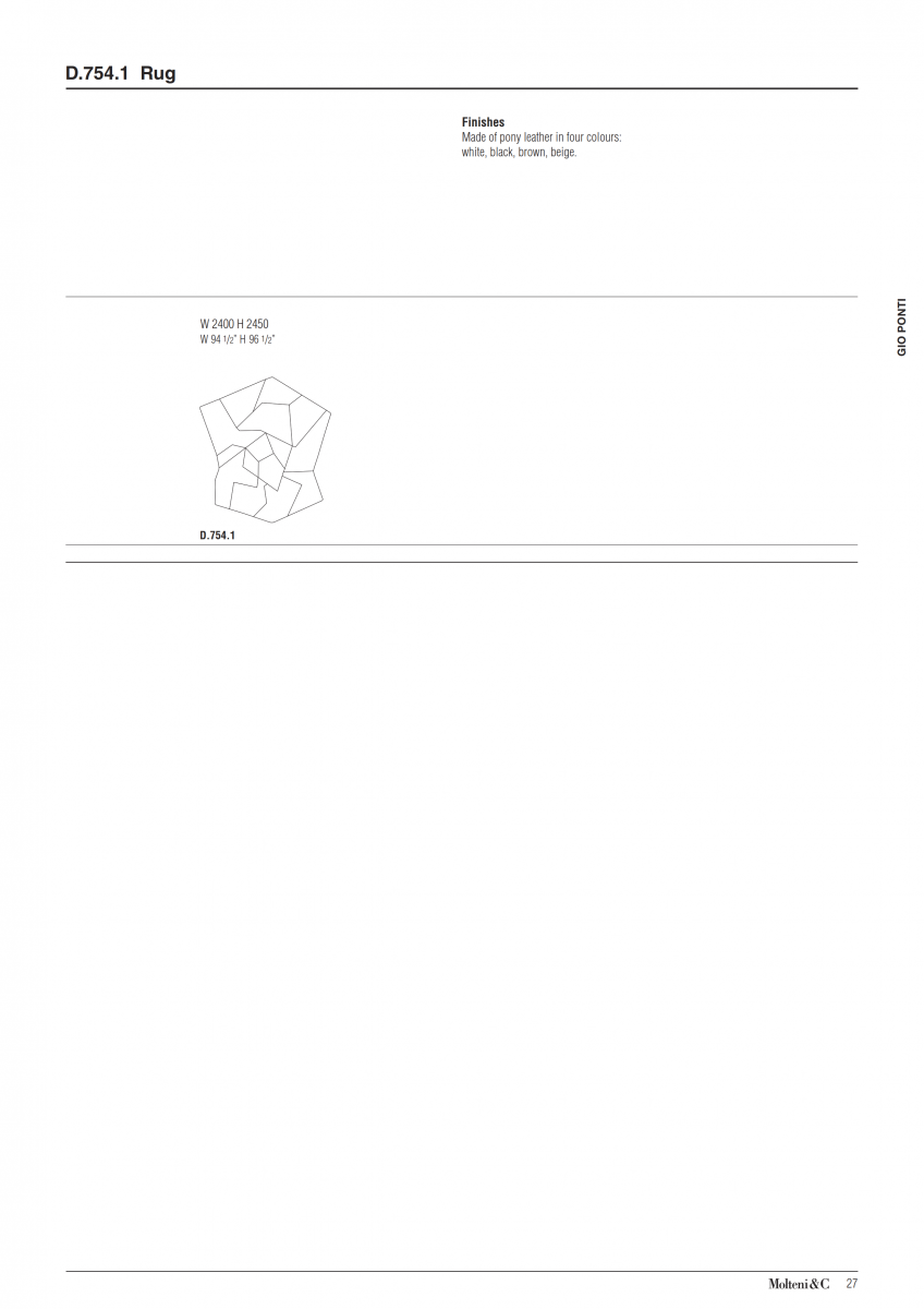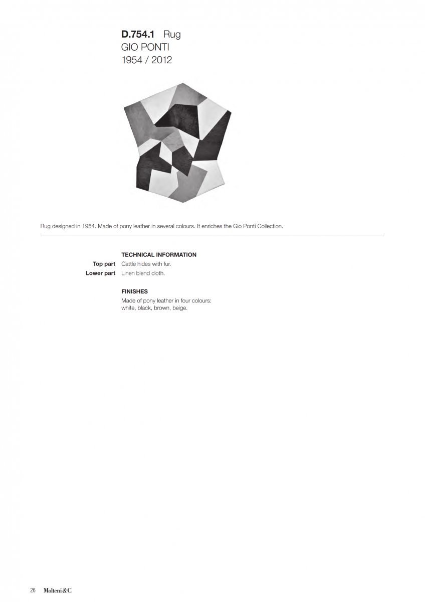 Rug designed in 1954. Made of pony leather in several colours. It enriches the Gio Ponti Collection.