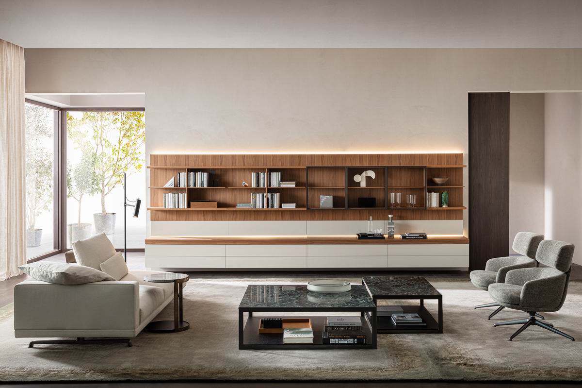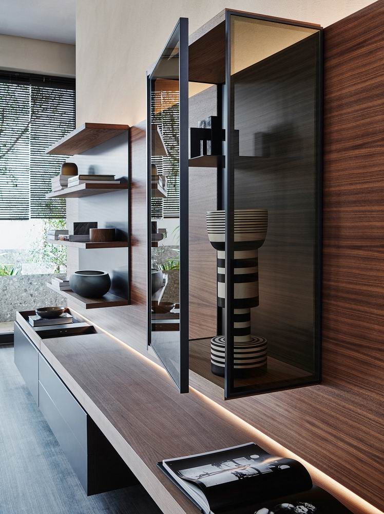 Grid, designed by Vincent Van Duysen, fully satisfies this criterion of infinite modularity. Grid is a new research chapter in what are known today as modular wall-systems. Research into the evolution of domestic space, also thanks to the presence of electronic devices that extend the perception of space.