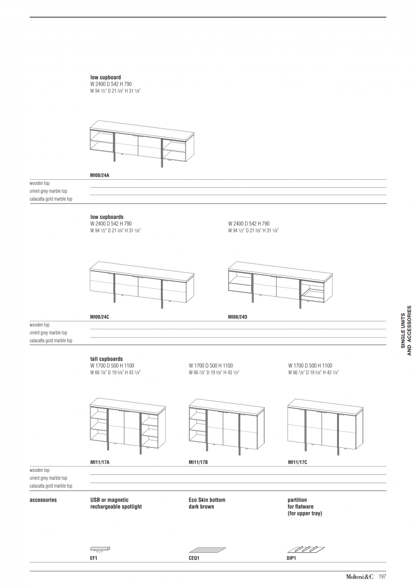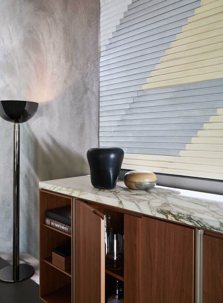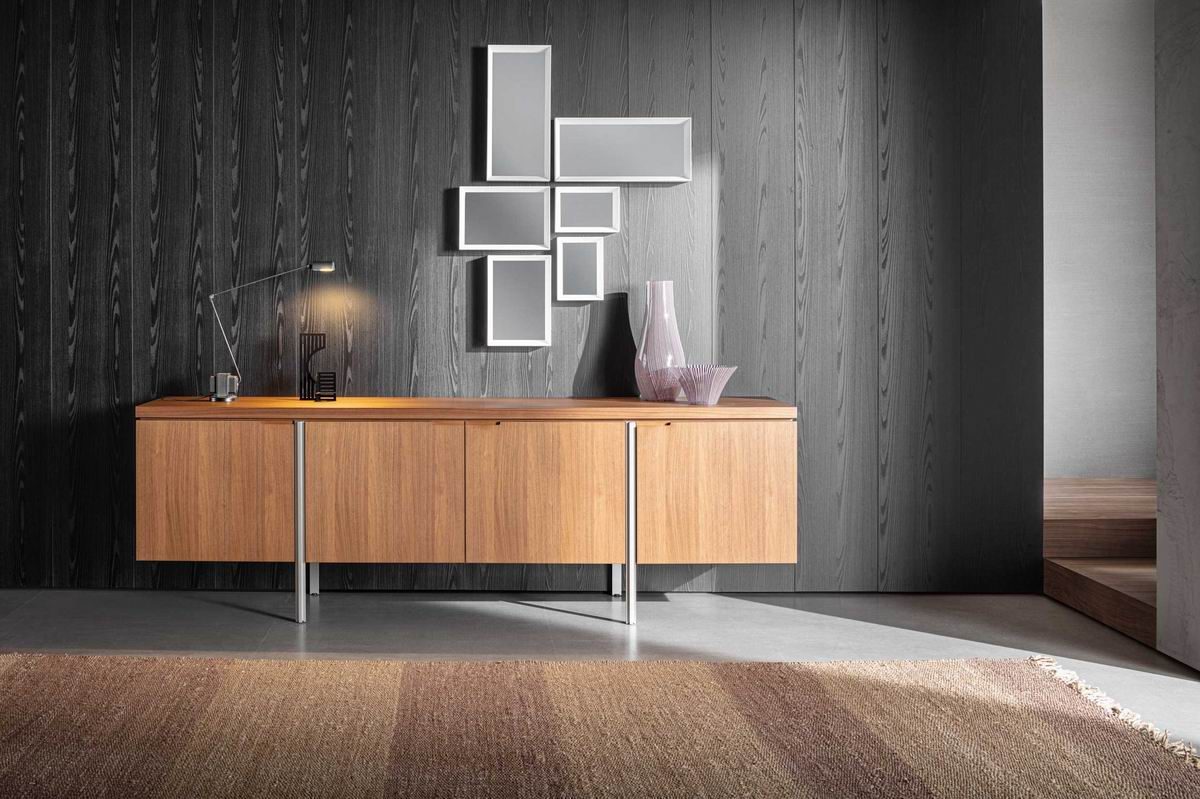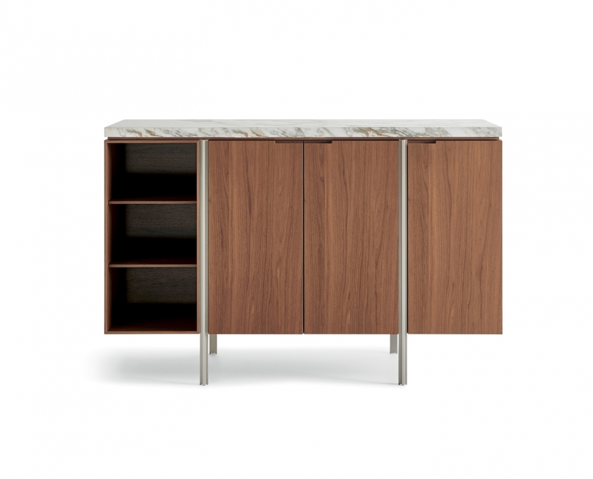 A precise, striking design for Irving, a small system for the living area, composed of tall and low storage units.