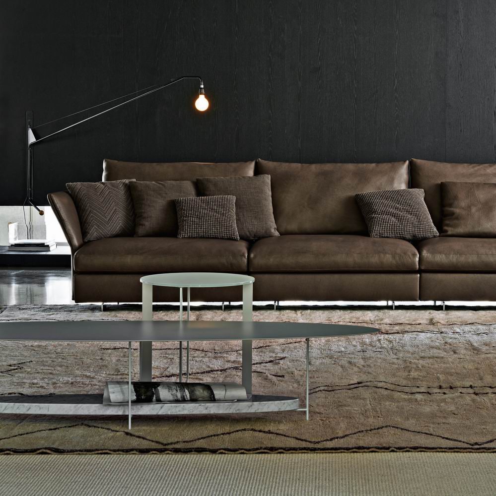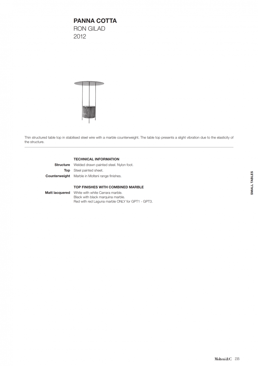 Panna Cotta low table oval or round. At once delicate and heavy, the paradox lies in the use of materials such as marble and iron to achieve a fragile stability. A small table, it has a slight wave on top reminiscent of the typical Italian soft dessert, from which it takes its name.