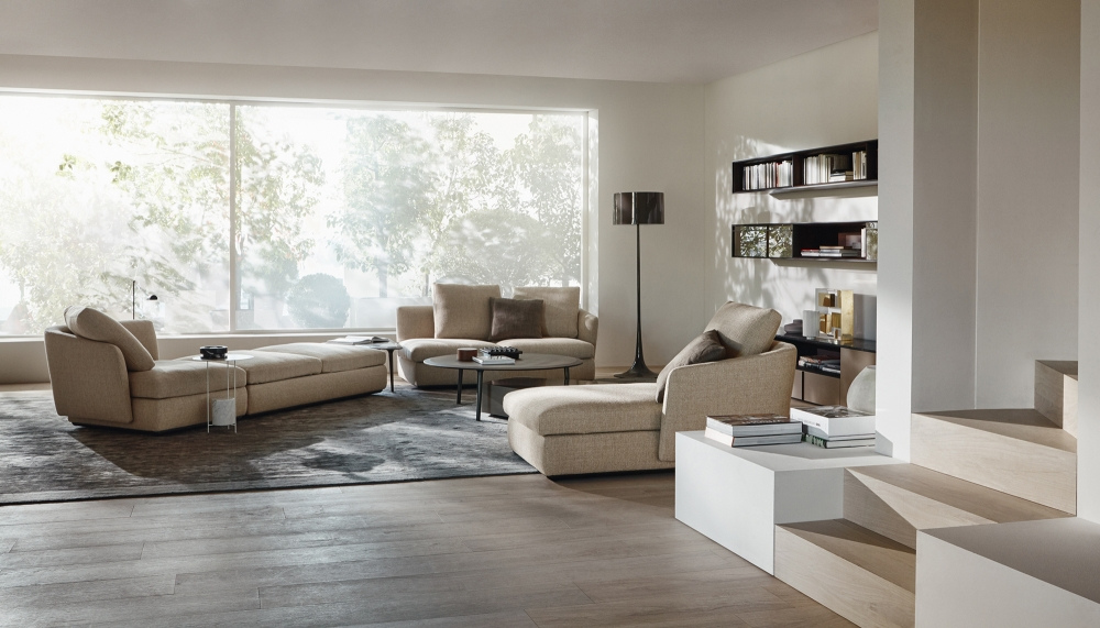 Sloane is a modular seating programme that can easily adapt to new furnishing solutions in line with contemporary living. It is a dynamic system in which the component parts offer an original interplay of soft volumes. By arranging seating and poufs, cosy corners can be created in which to chill out at will.