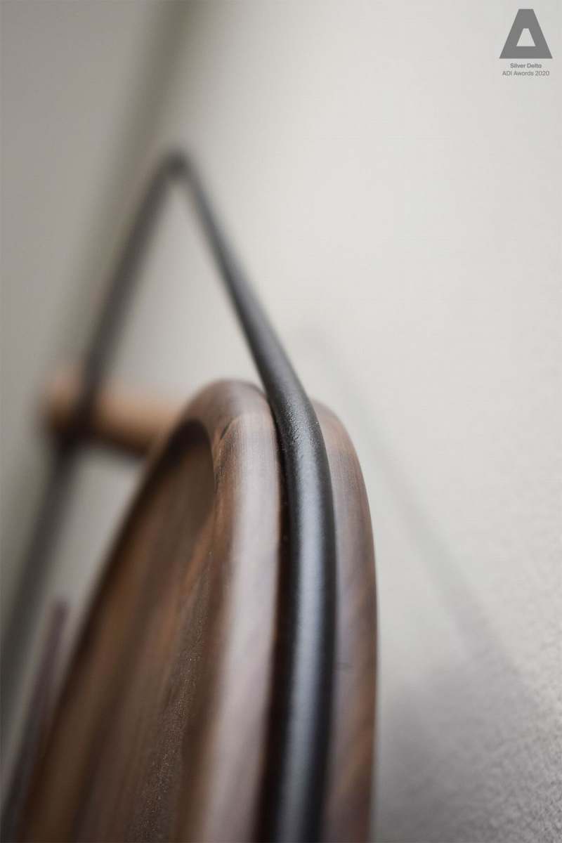Walnut wood, polished brass and ring in brass or black finish