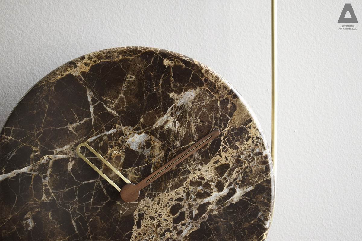 Emperador marble, walnut wood and polished brass and ring in brass or black finish