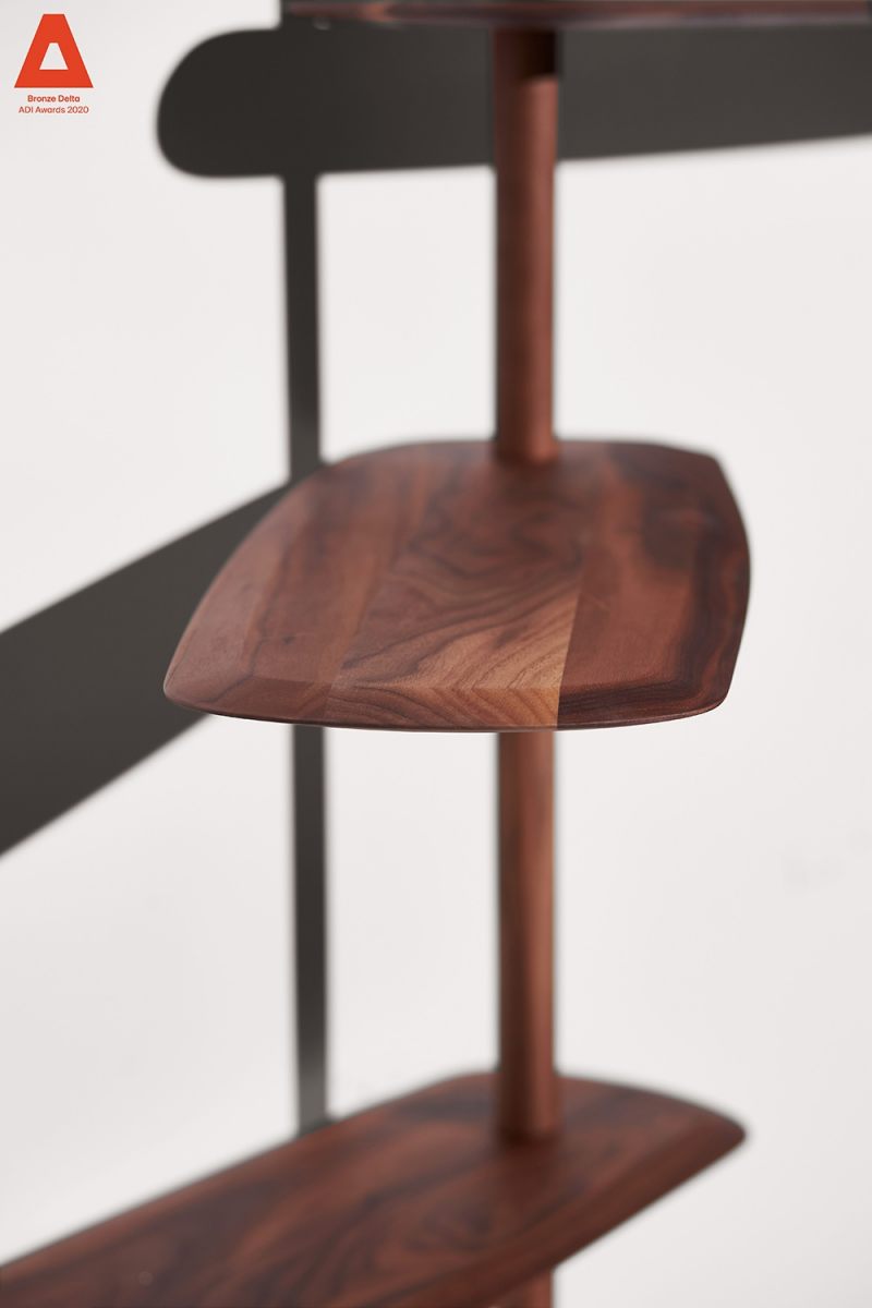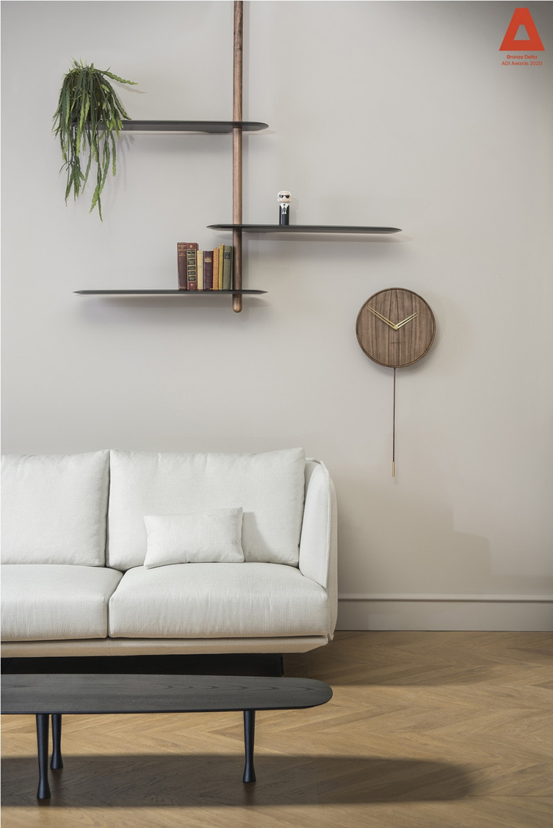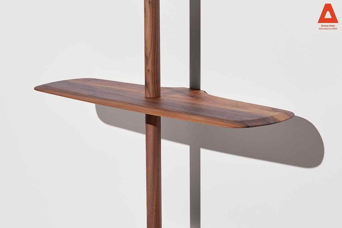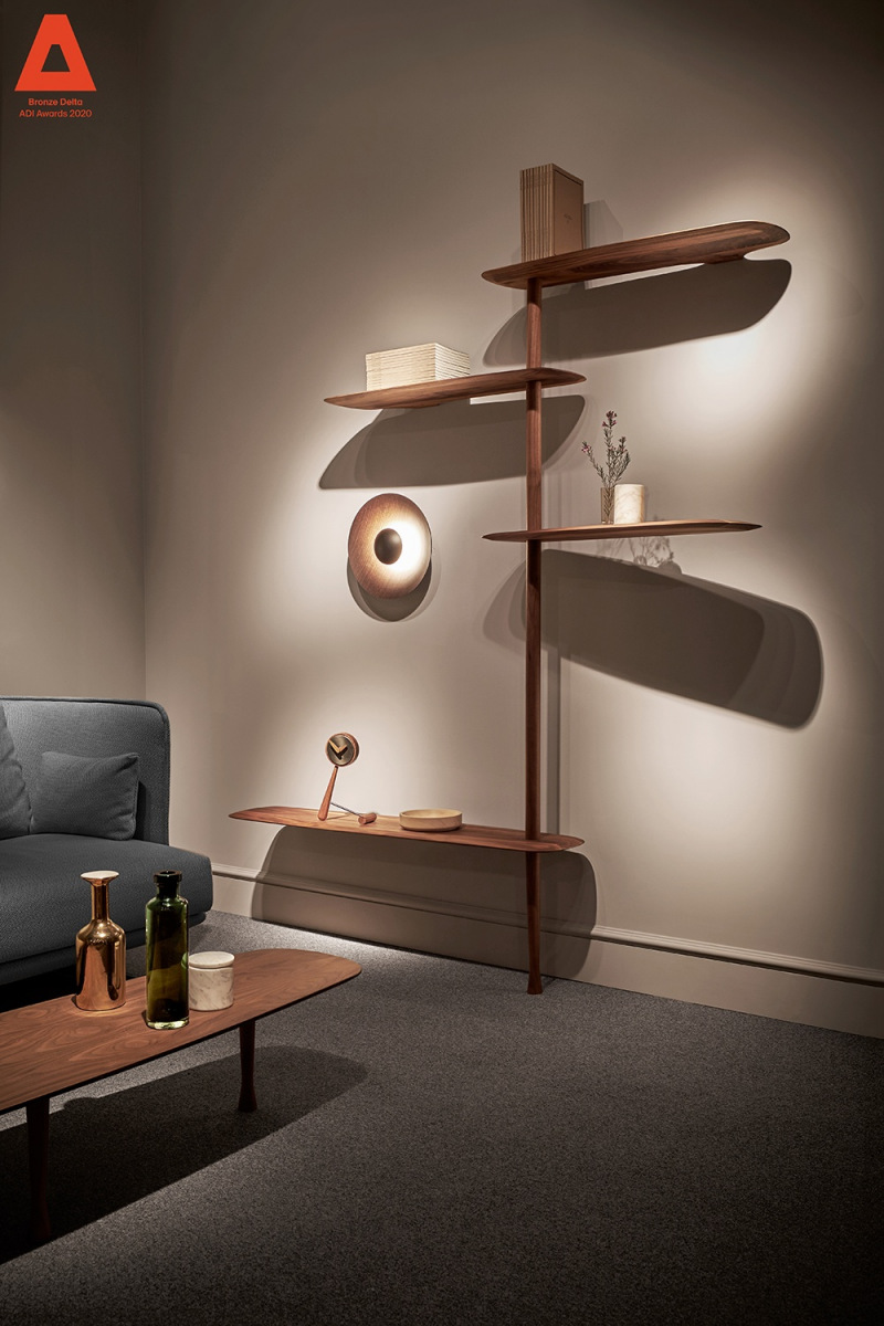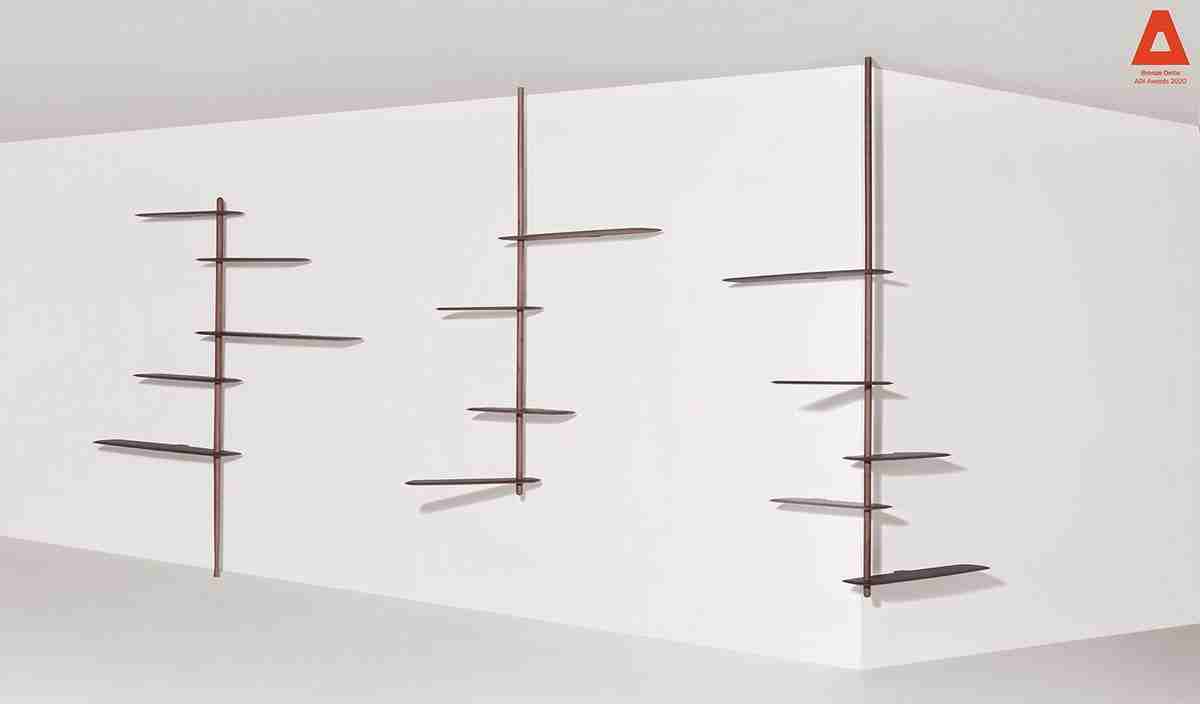 Modular system consisting of shelves and rods with different sizes. The system stands due to a central base in which you can alternate fixed shelves to the wall with floating shelves, providing strength and flexibility to the structure at the same time.