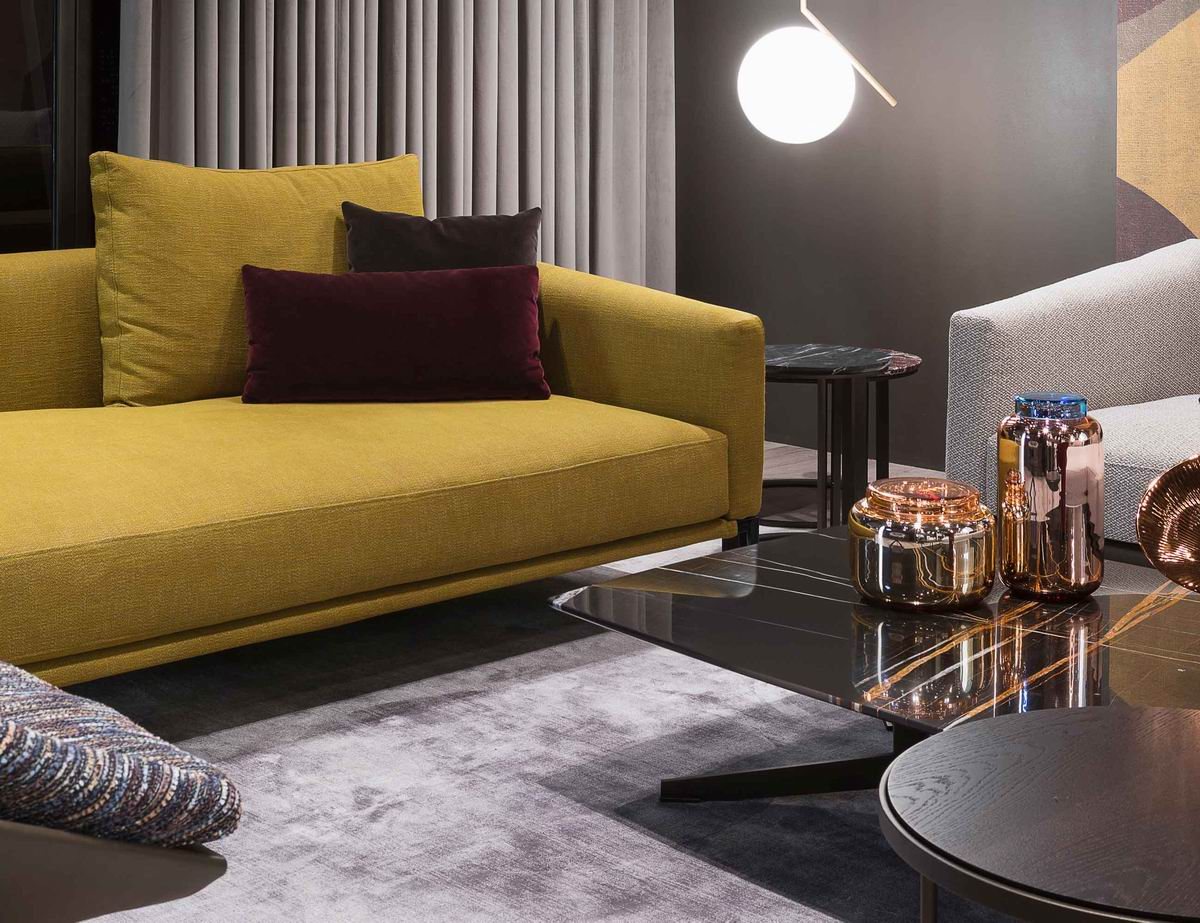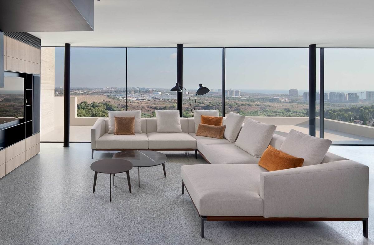 Pace, is a collection of sofas designed to recreate the dynamic atmosphere that inspired its name. The collection consists of several components such as sofas, daybeds, poufs and other elements of every type devised to compose almost every singe configuration. Extremely versatile, just like a close-fitting or loose garment, ideal for the city and for a holiday, warm or light-weight, suitable for every situation, whether in summer or in winter, in Mallorca or in Manhattan. Metal feet in Black Chrome. Base may be produced in contrast leather or same finish as the rest of the sofa.