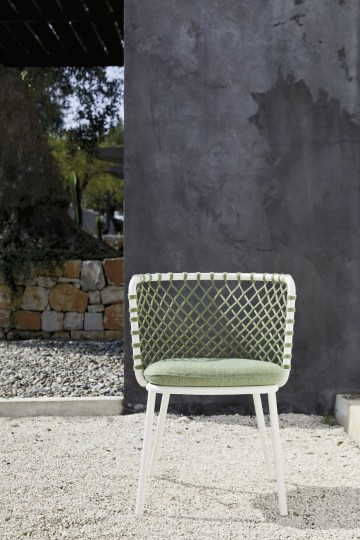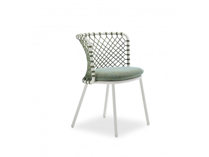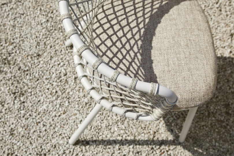 Καρέκλα από ατσάλι 304 βαμμένο με χρώμα πούδρας και πλέξη Flat Trendyrope. Έχει κομψή σχεδίαση και προσφέρει απέραντη άνεση, χάρη στην ύφανση της πλάτης του καθίσματος, η οποία υποστηρίζει το σώμα προσαρμόζοντας φυσικά την τάση του σχοινιού που στρίβει στο πλαίσιο. Ιδανική για ένα άνετο περιβάλλον τόσο σε οικιακούς χώρους όσο και σε ξενοδοχειακές μονάδες και επαγγελματικούς χώρους. Κατάλληλο για εσωτερικούς και εξωτερικούς χώρους.