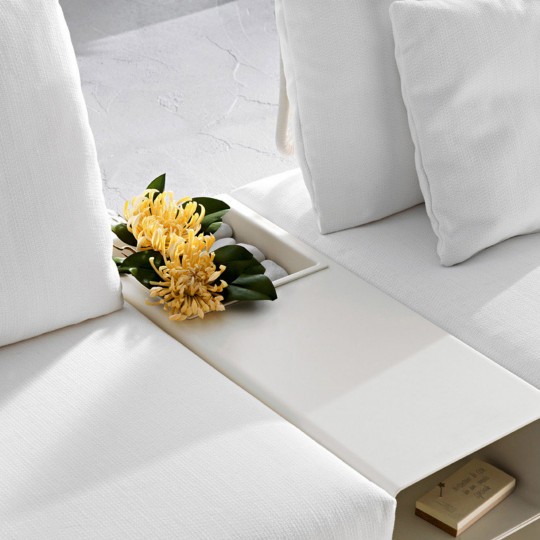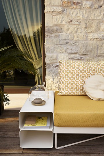 Τραπέζι αποθήκευσης αλουμινίου με 2 ανοιχτά τμήματα για εξωτερικό χώρο. Αντικείμενο που προορίζεται κυρίως ως συμπλήρωμα σύνθεσης: μπορεί να χρησιμοποιηθεί ως χώρισμα, ως μικρό τραπέζι ή ως αποθηκευτικός χώρος. Χάρη στην ευελιξία του, εμπλουτίζει όλη τη σύνθεση. Είναι ιδανικό ως έπιπλο αποθήκευσης εξωτερικού και εσωτερικού χώρου, για το σπίτι και για ξενοδοχειακές μονάδες και άλλους χώρους.